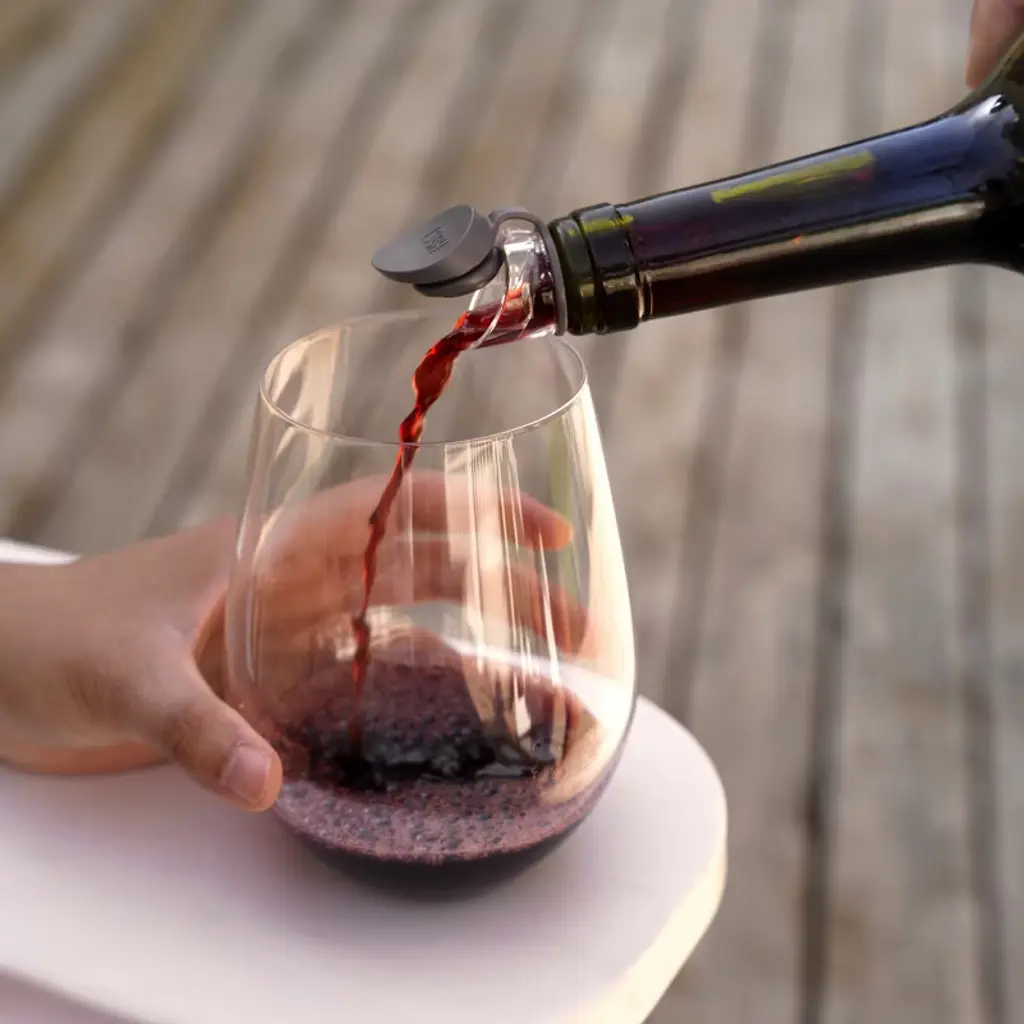Host Tilt Mini Wine Aerator Pour Spout, Wine Bottle Spout Pourer, Wine Pourer Aerator With Stand, Silicone And Plastic, Grey Set Of 1