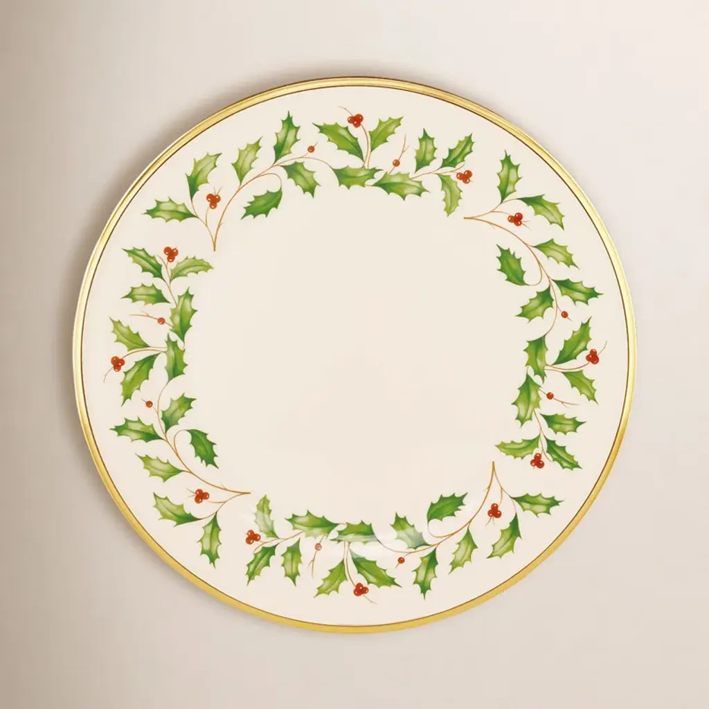 Decorated with the brand's iconic holly and berries motif and 24K gold accents, Lenox's festive collection is at the center of any warm and inviting holiday tablescape.