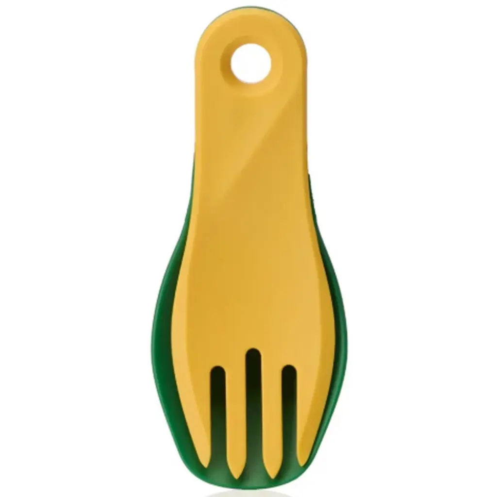 The Humangear GoBites Bio Spin is a collapsible spork made from a plant-based resin, designed for portability and sustainability. It combines a fork and spoon into one compact utensil, and features a unique nested design for easy storage and transport.
