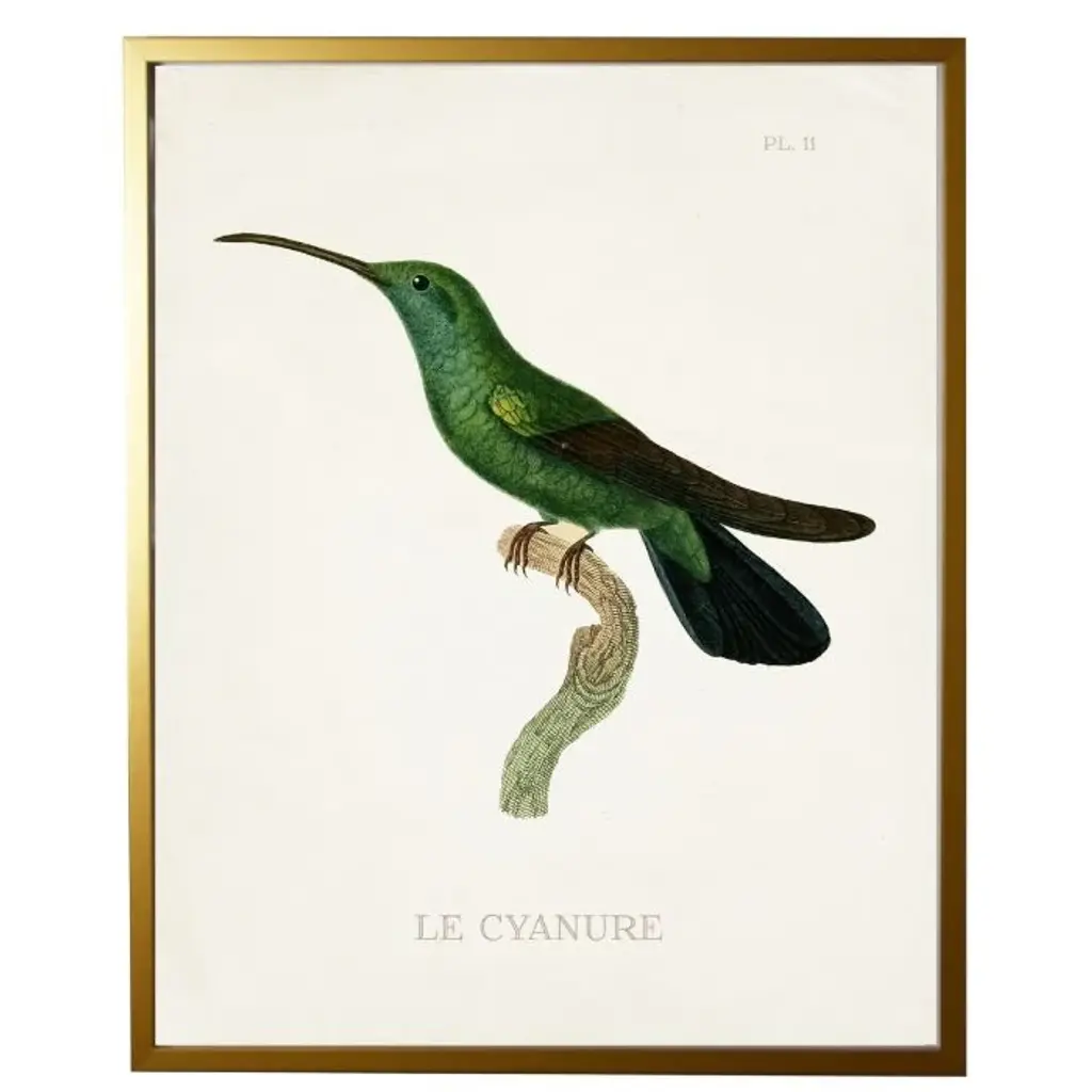 Hummingbird Plate 11 On White Left Facing Gold Wood Frame Wall Art (Size Options)
