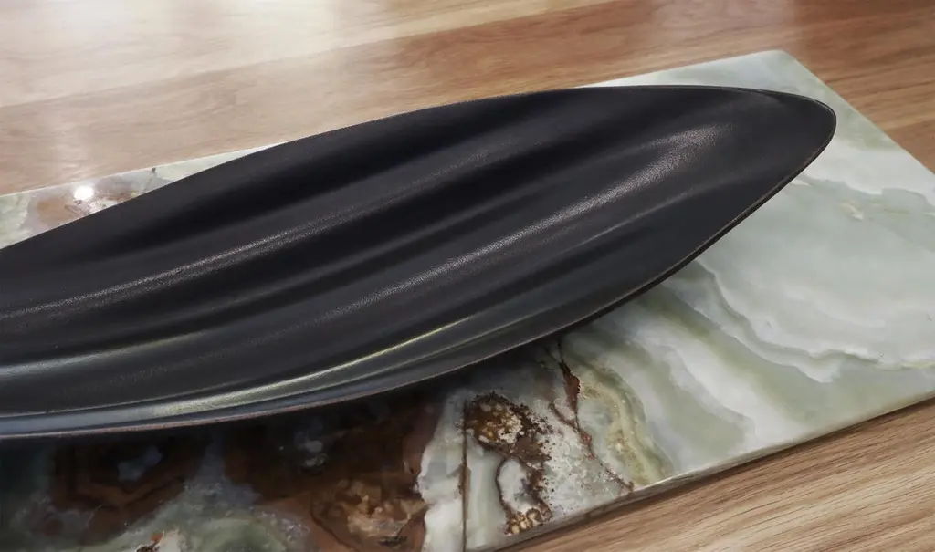 The Husk Display Plate represents both form and function, making it a stunning addition to any home. Crafted from solid bronze, this piece boasts a beautifully weighted design that exudes timeless elegance. With its unique and striking aesthetic, the Husk Display Plate is sure to be a conversation starter and a statement piece in any room.Not suitable for food storage.Available in two shapes, Curl (left) and Arc (right). Hand-crafted in Dunedin, New Zealand.