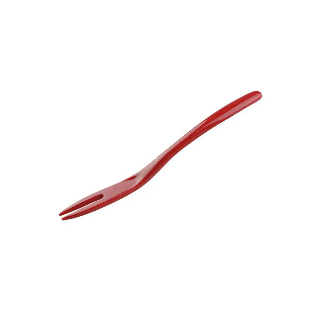 Made of the highest quality melamine, this condiment fork is perfect for reaching into narrow jars & serving small bites such as olives and pickles. Use it when cooking and serving sliced meats and breakfast sausage. Holds food in place while slicing.With no hole in the handle, it looks great on the table and is comfortable in your hand when using. Safe for use on your best nonstick cookware and heat resistant to 360°F.It features a permanent glossy shine and is made of strong and durable melamine.Measures 7.75 inches long overall. Made in Thailand. Dishwasher safe, BPA free.