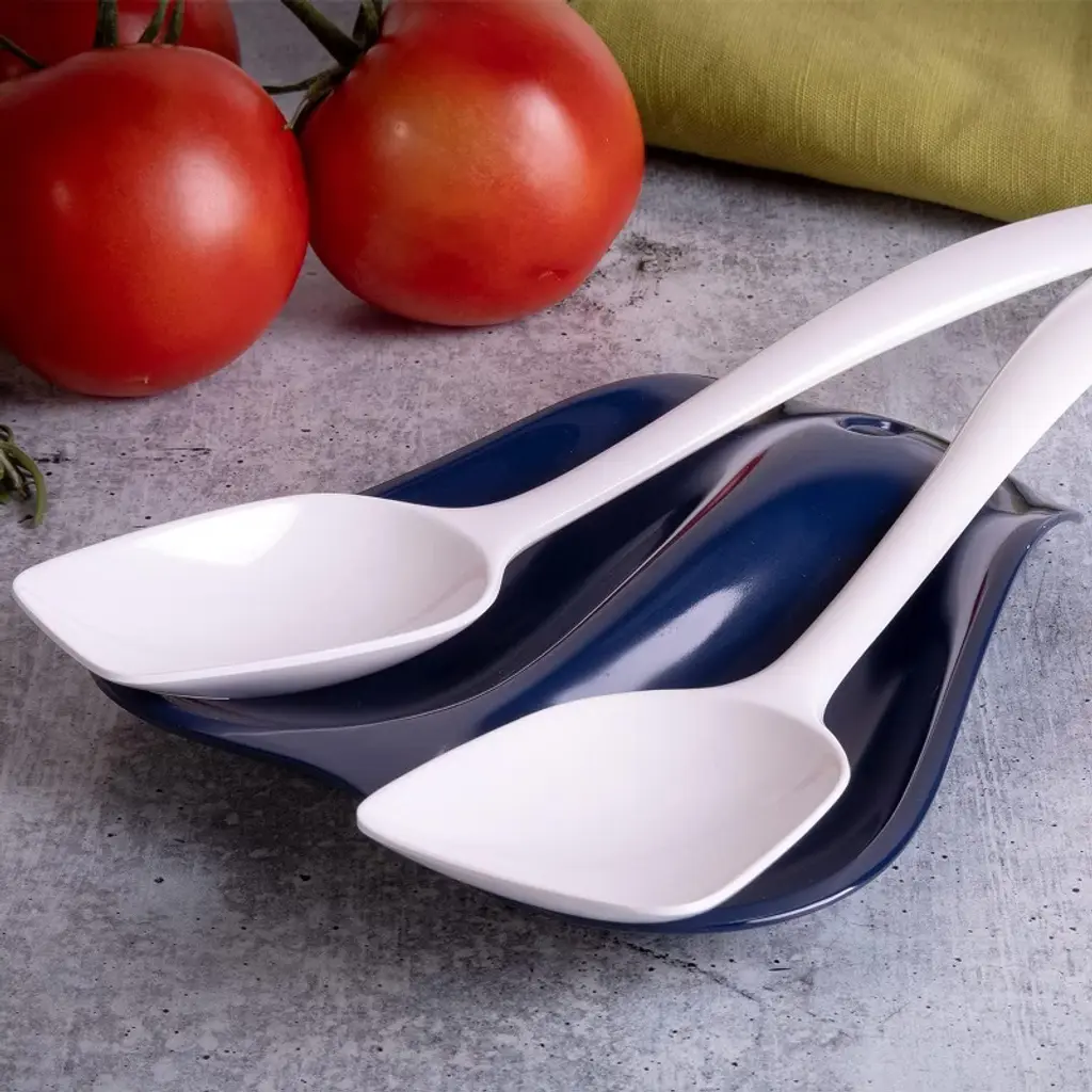 Hutzler Twin Double Melamine Spoon Rest - Sleek Design Holds 2 Large Spoons Green