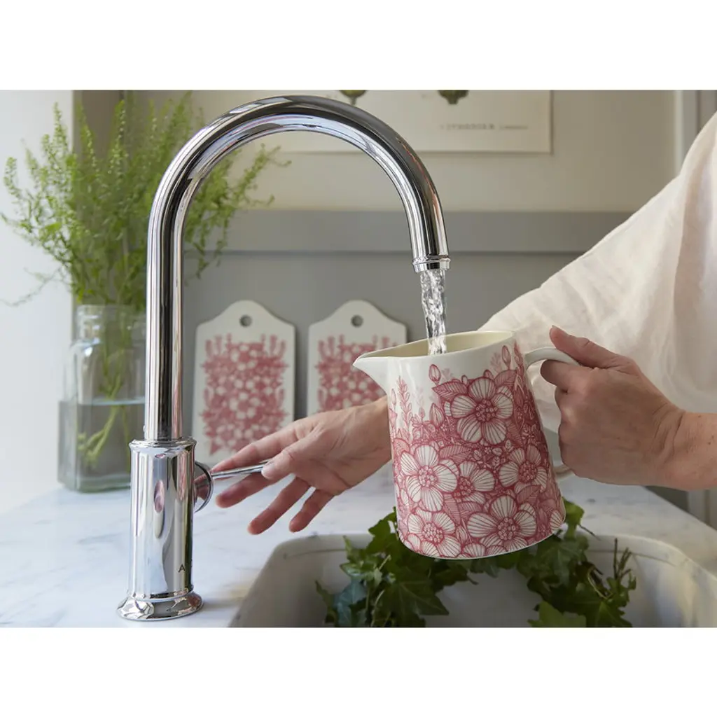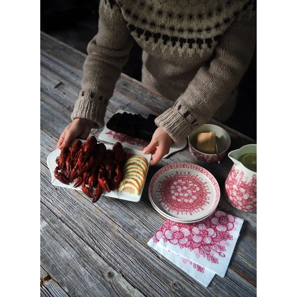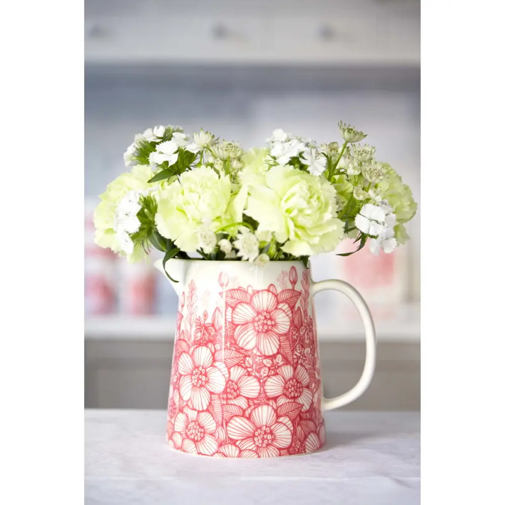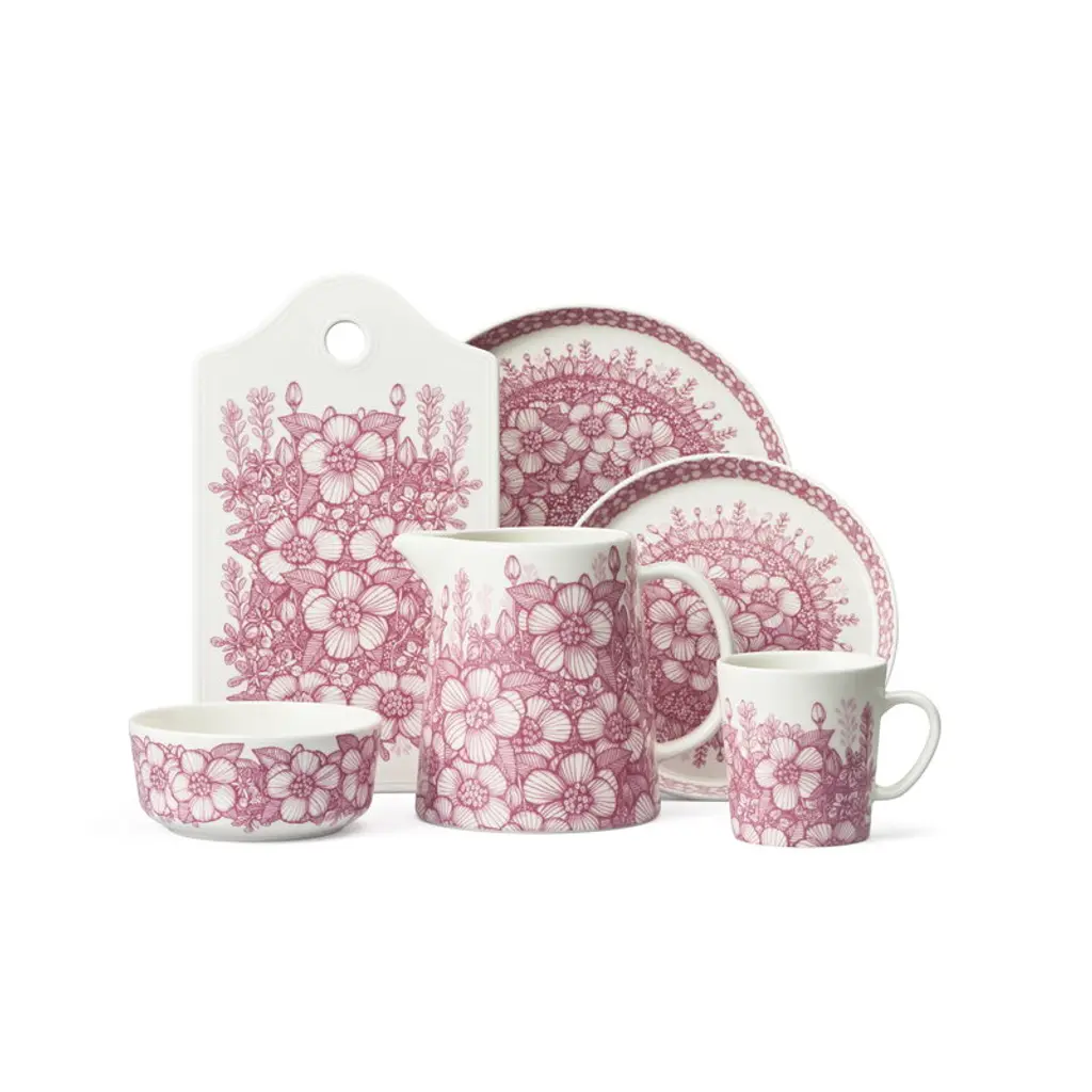 Arabia’s Huvila pitcher is adorned with delicate pink flowers drawn by Heini Riitahuhta. Huvila is Finnish for a villa, and the nostalgic floral pattern breathes the atmosphere of warm childhood summers at grandma’s house. With influences from the 1920’s decorative motifs, the contemporary Huvila collection continues Arabia’s decorating tradition in a charming manner.