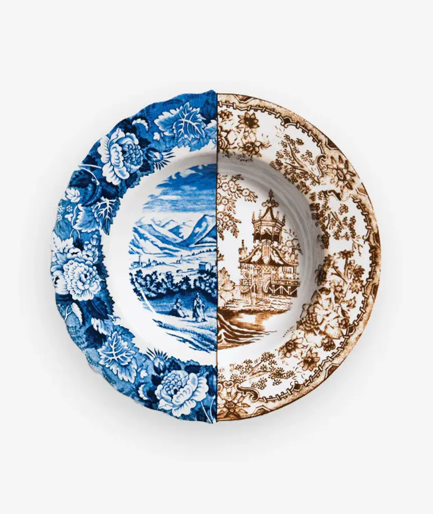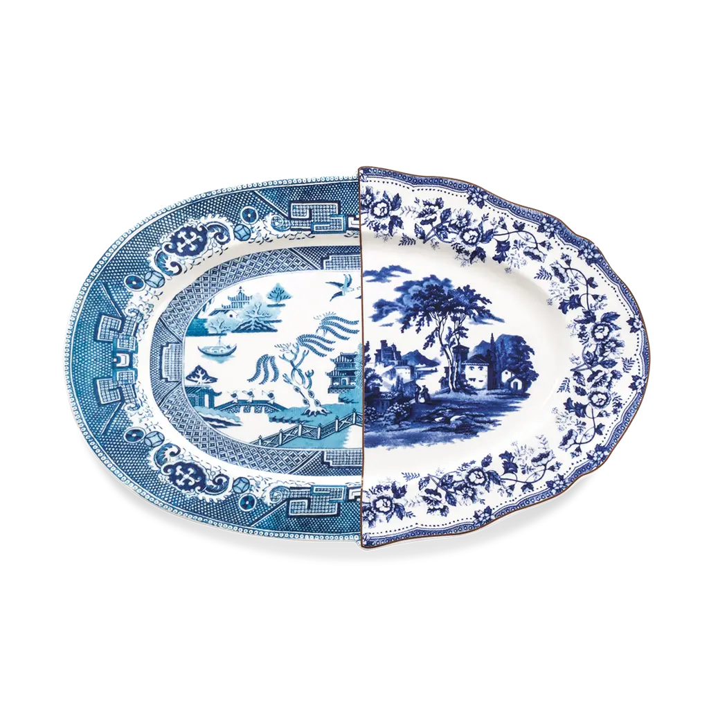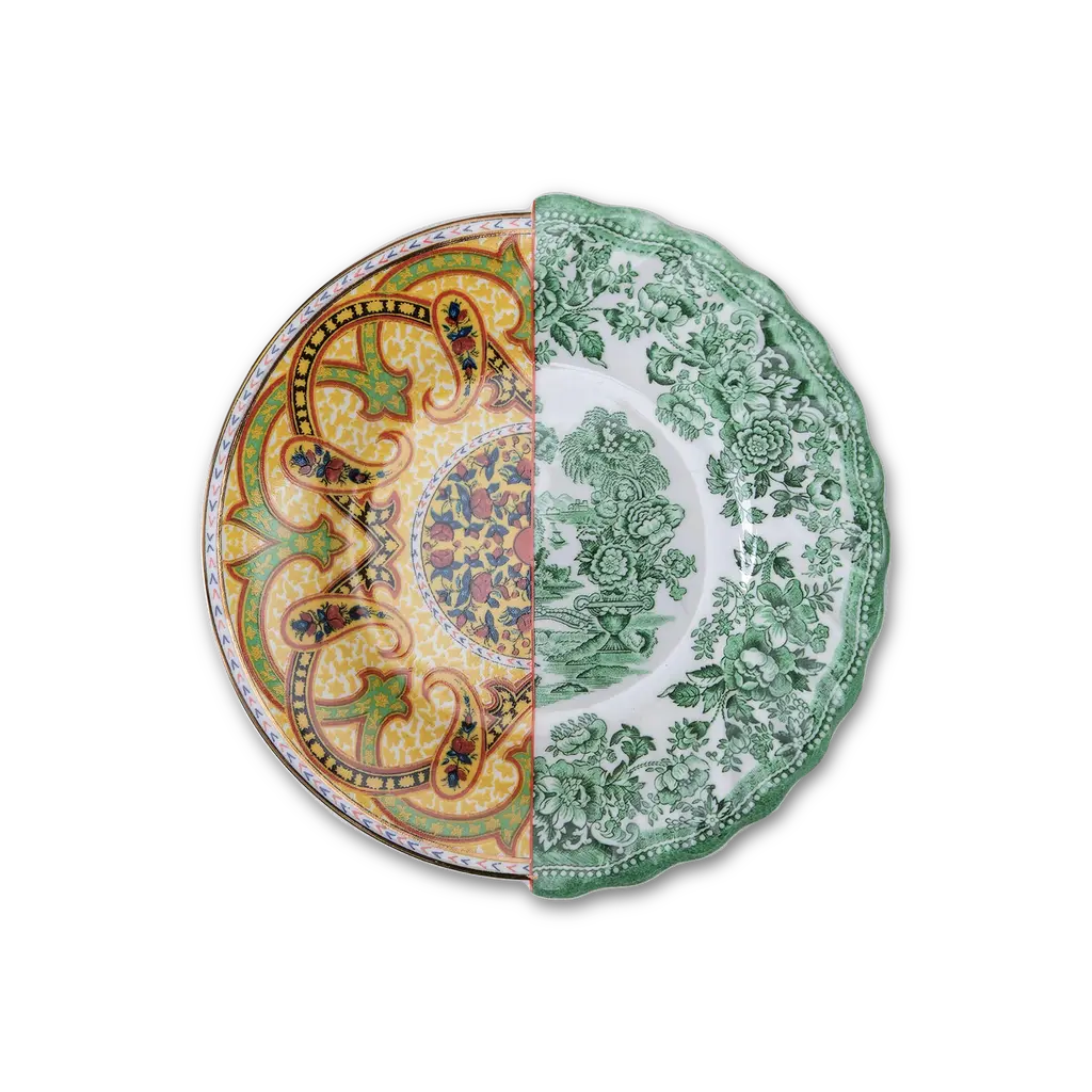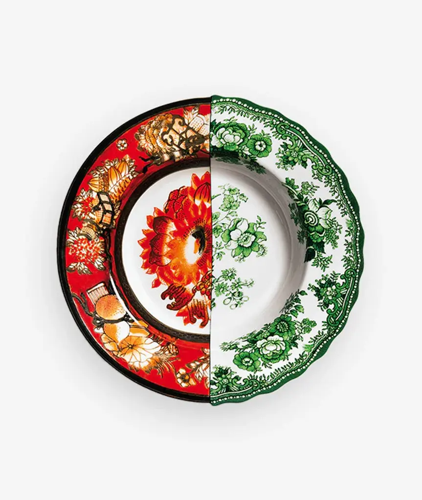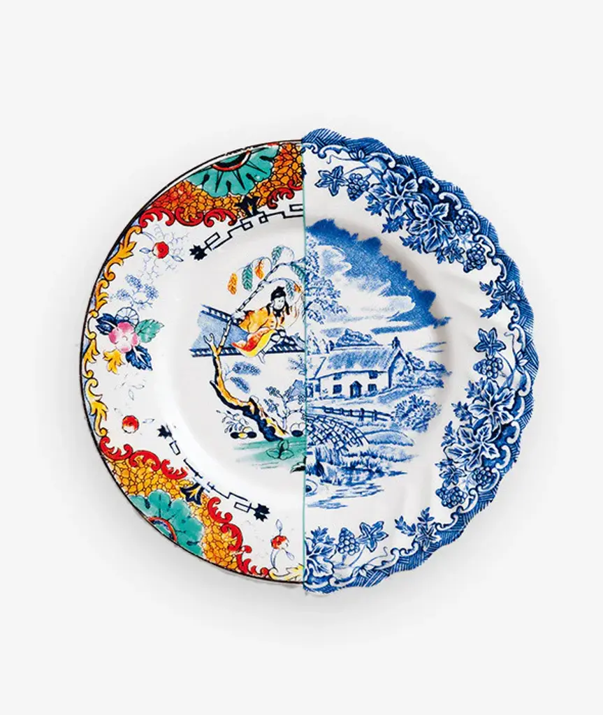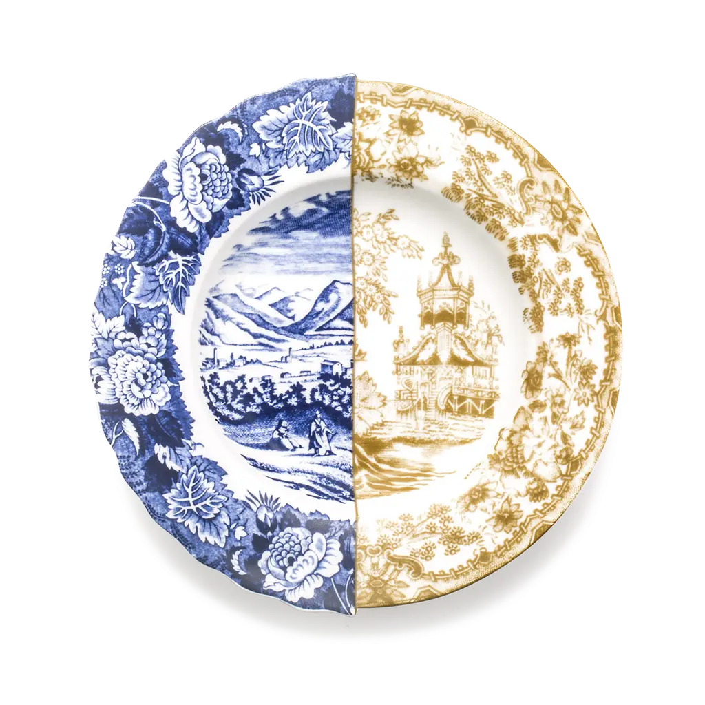 The split personality Hybrid dinnerware series fuses traditional Eastern and Western aesthetics in a playful but sophisticated way. Each piece of the collection melds two different china patterns – one from the East and one from the West – giving the impression that two separate plates, bowls, or cups have been joined together. To see the entire Hybrid dinnerware series, click here.