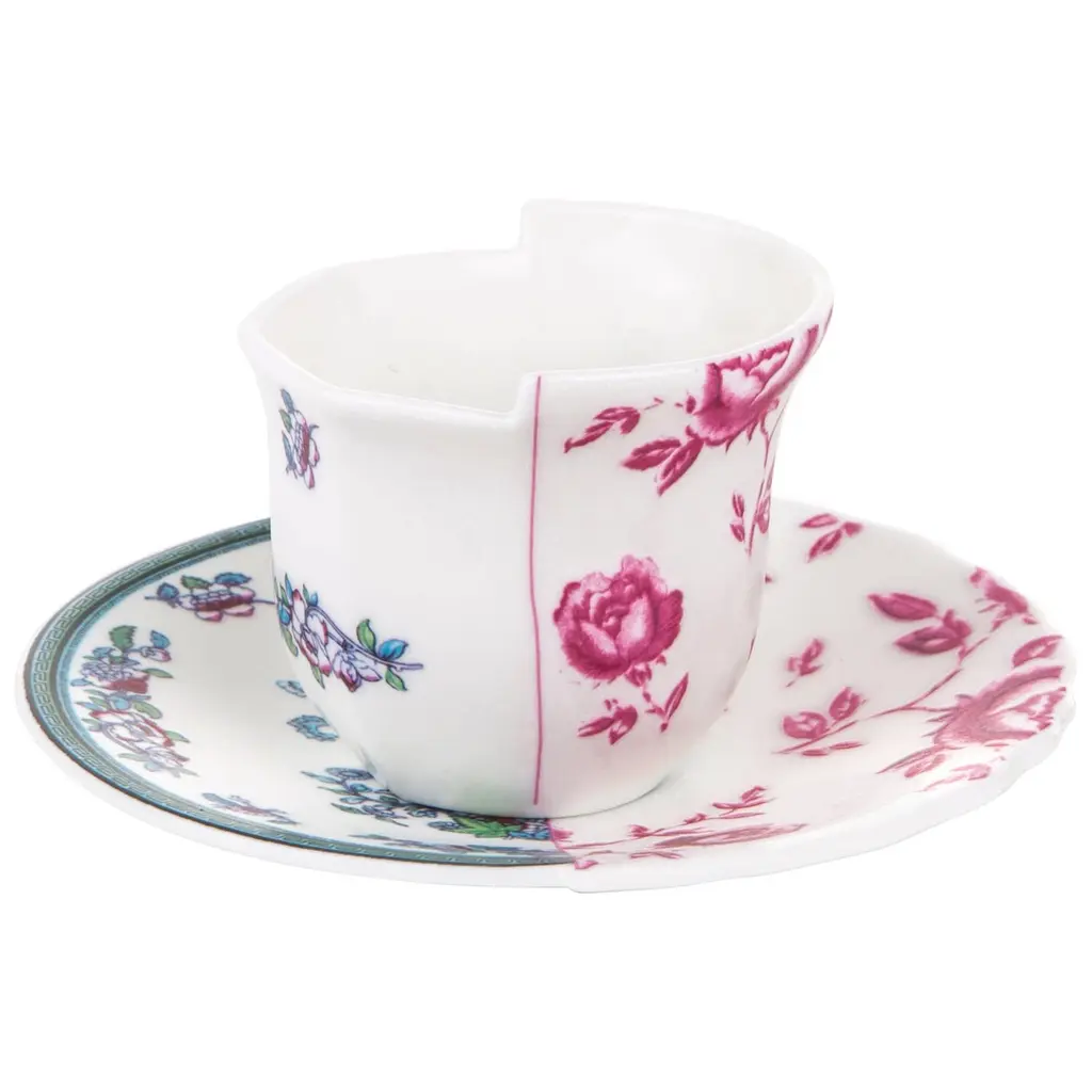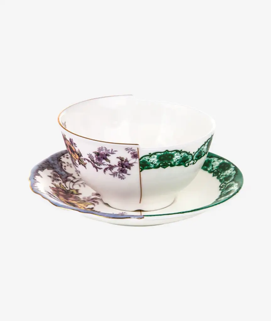 The split personality Hybrid dinnerware series fuses traditional Eastern and Western aesthetics in a playful but sophisticated way. Each piece of the collection melds two different china patterns – one from the East and one from the West – giving the impression that two separate plates, bowls, or cups have been joined together. To see the entire Hybrid dinnerware series, click here.