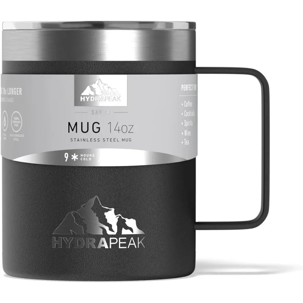 Hydrapeak 14oz Stainelss Steel Coffee Mug With Handle And Lid Black