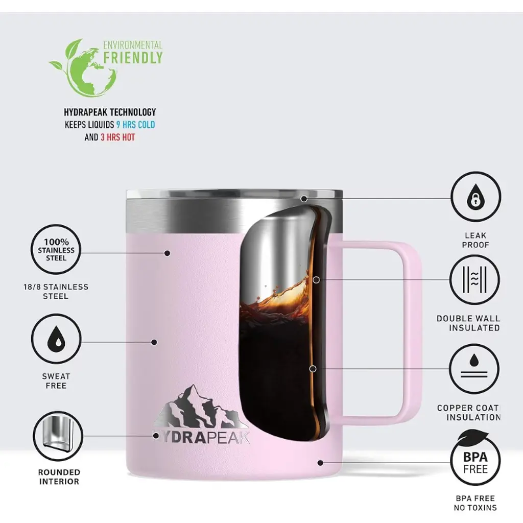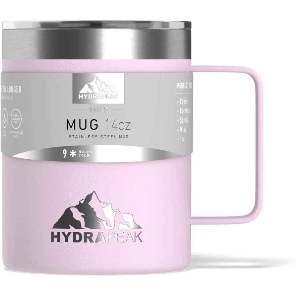 Hydrapeak 14oz Stainelss Steel Coffee Mug With Handle And Lid Blush