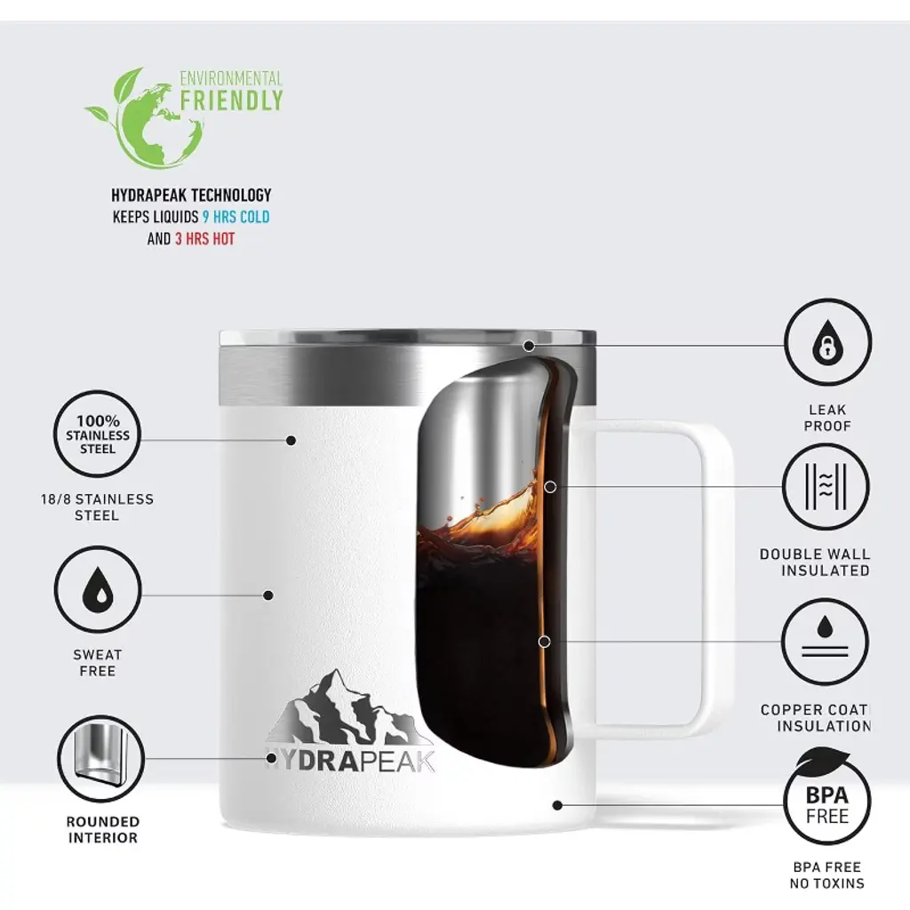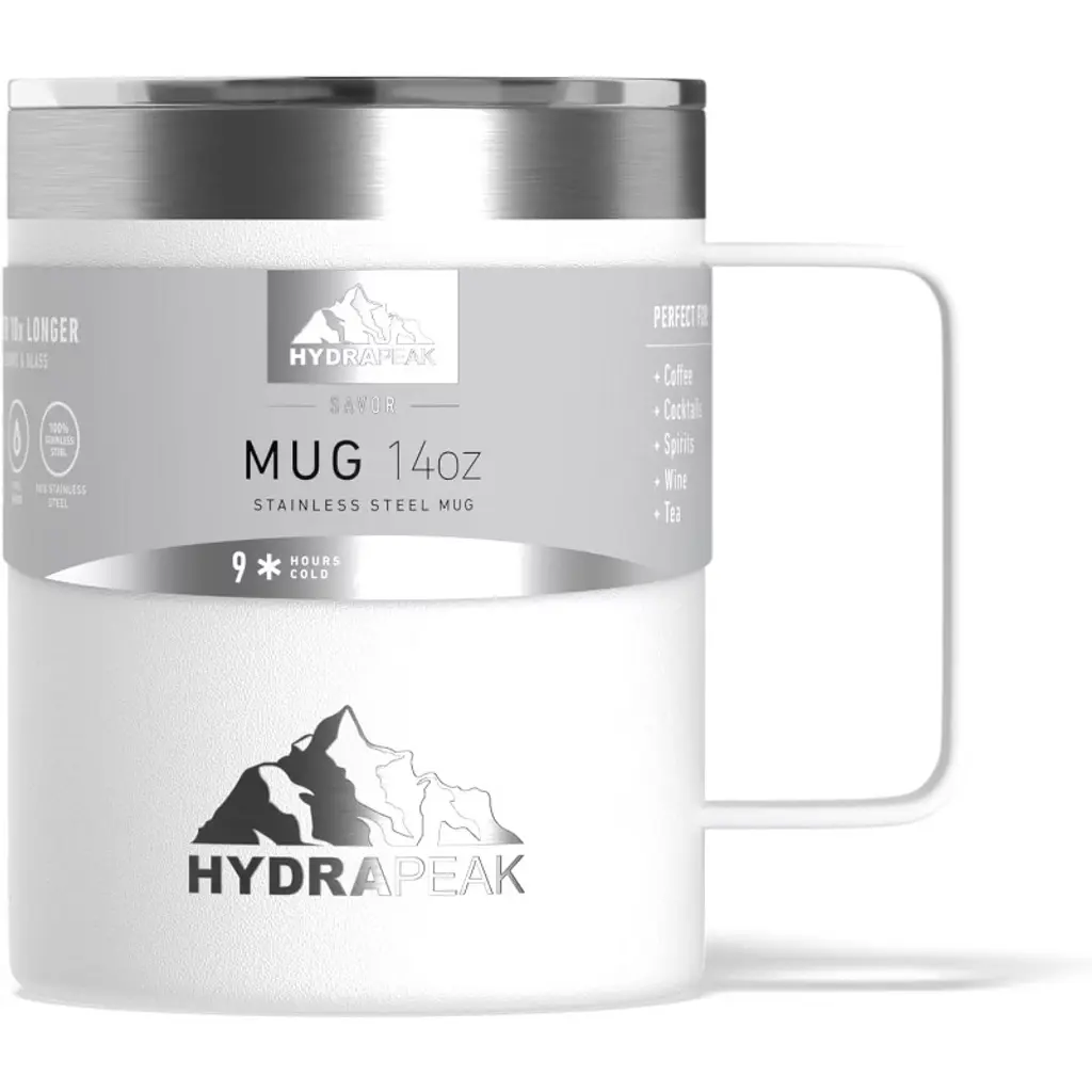 Hydrapeak 14oz Stainelss Steel Coffee Mug With Handle And Lid White