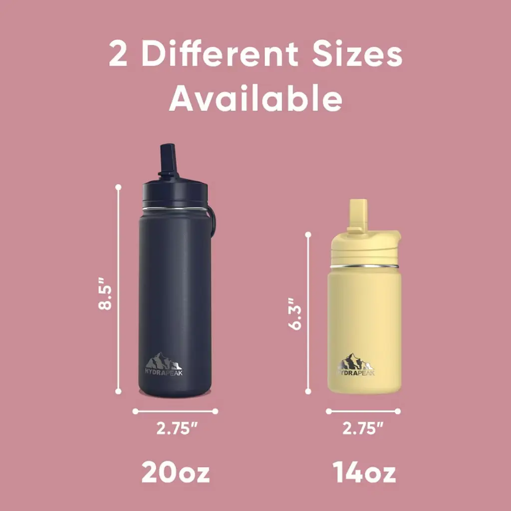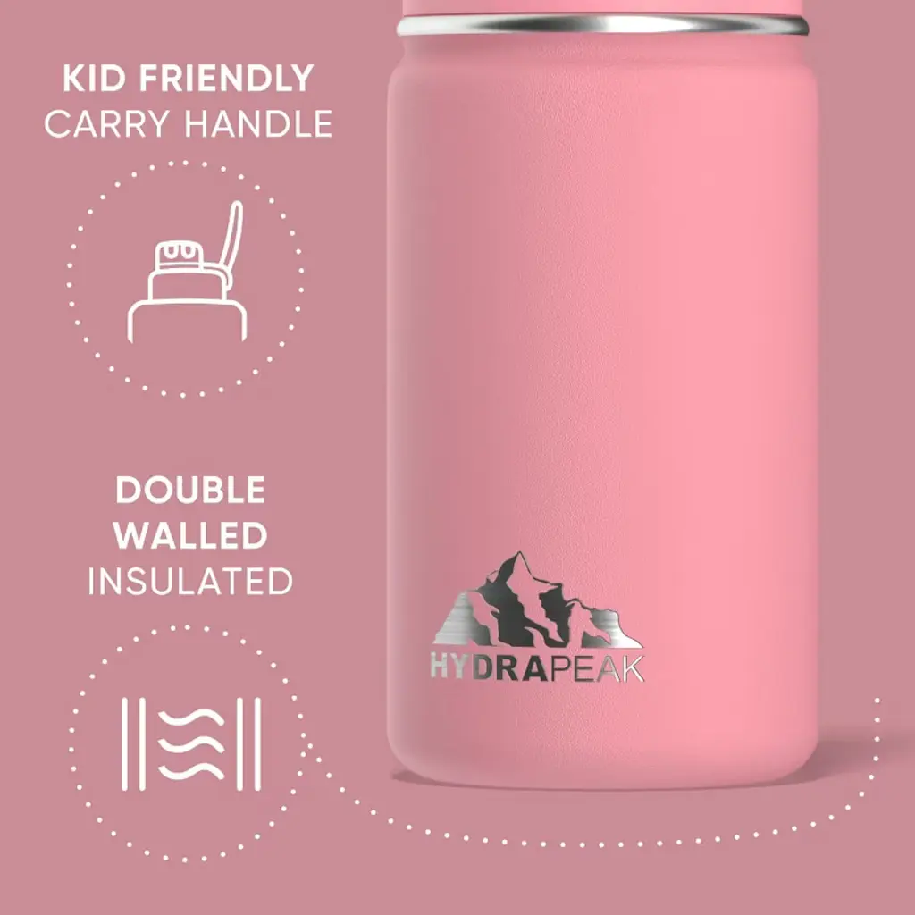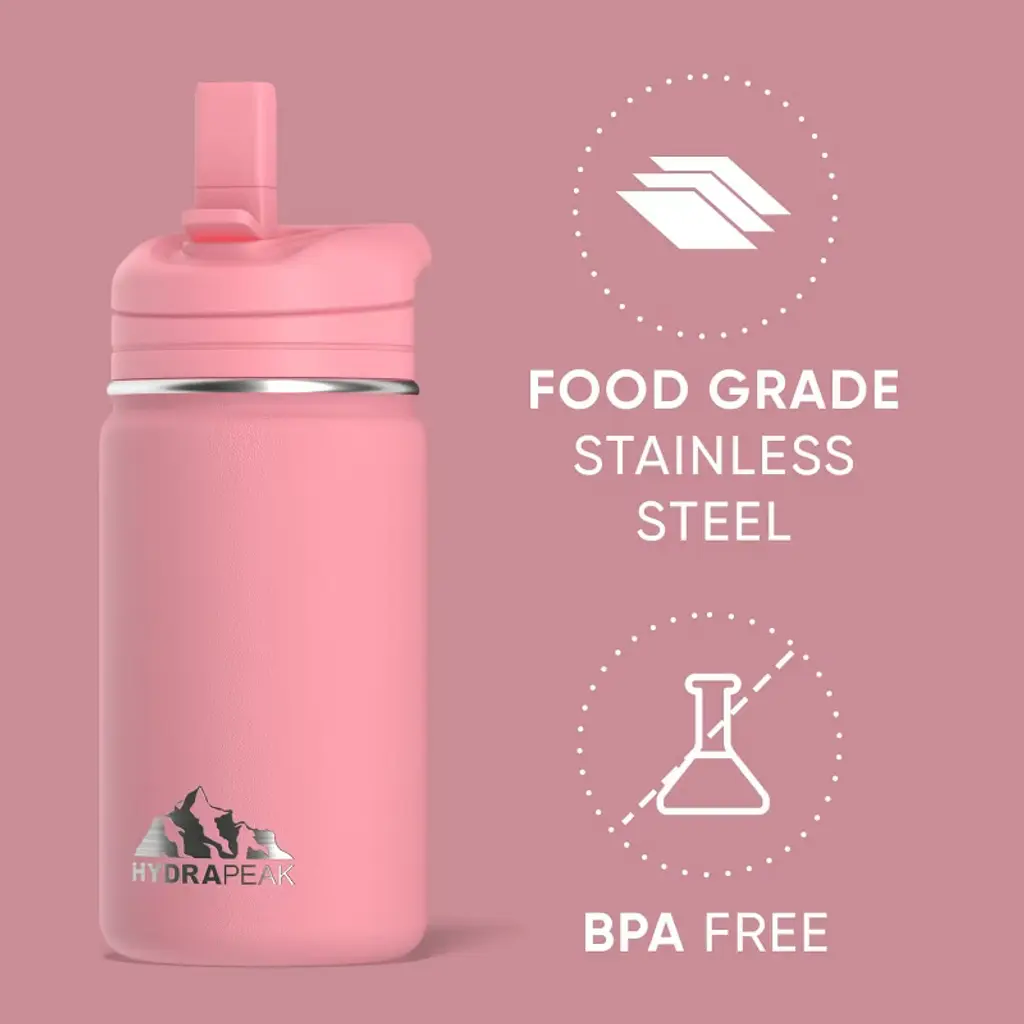 Hydrapeak Mini 14oz Kids Stainless Steel Insulated Water Bottle With Leak Proof Straw Lid (Bubblegum)