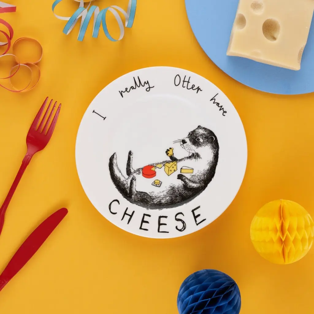 This otter really has to have all the cheeses, and just one more bite...Material: bone china