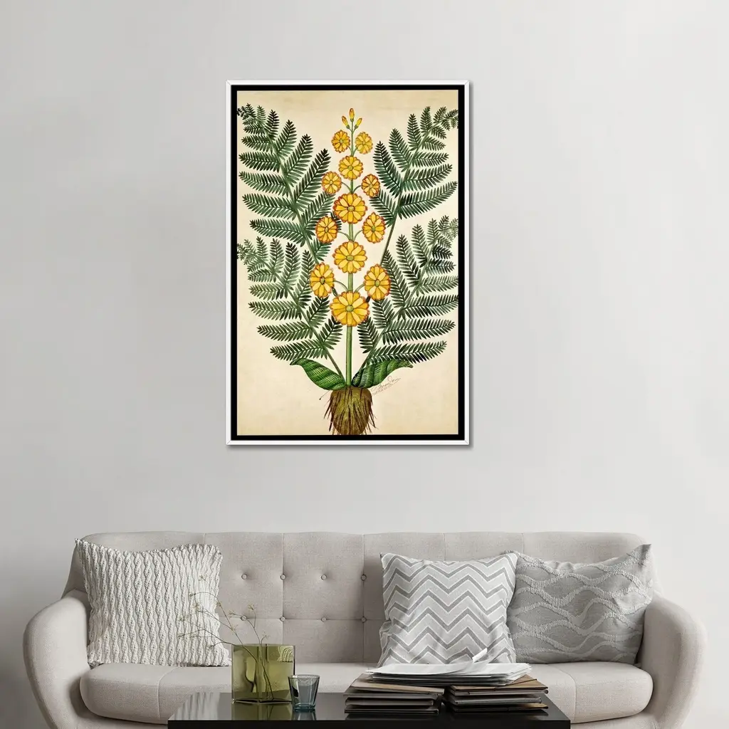 Icanvas "Fern With Yellow Flowers, Plate From A Seed Merchants In Oisans " By French School Framed - Black - 40x26