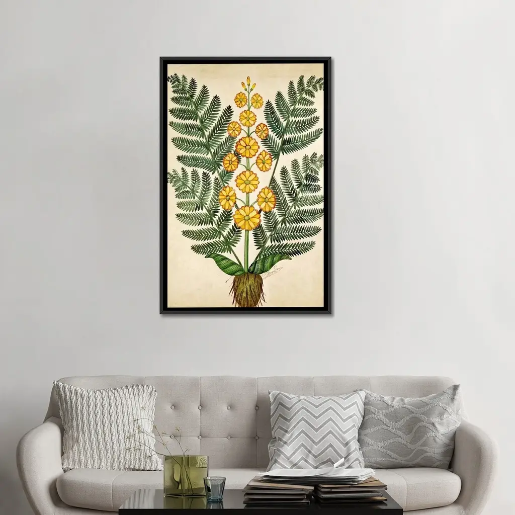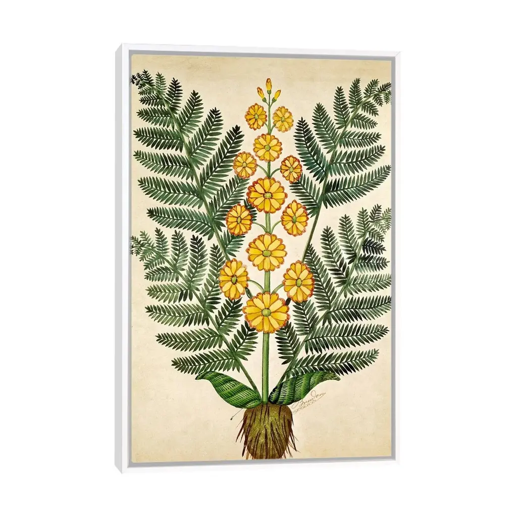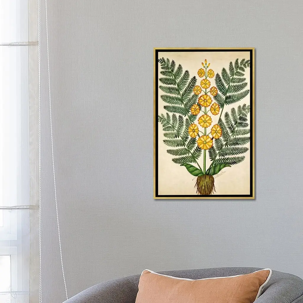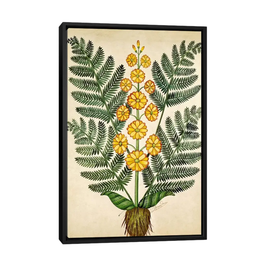 Icanvas "Fern With Yellow Flowers, Plate From A Seed Merchants In Oisans " By French School Framed - Gold - 40x26