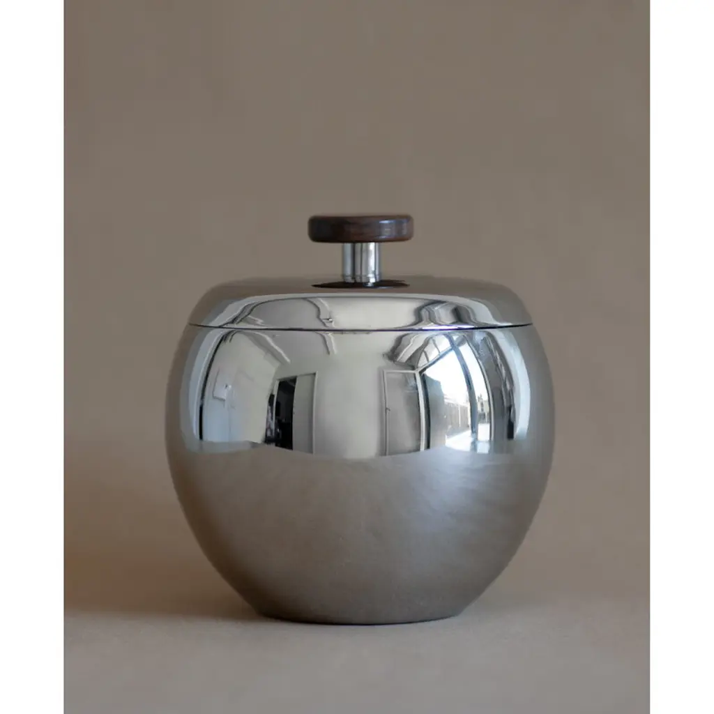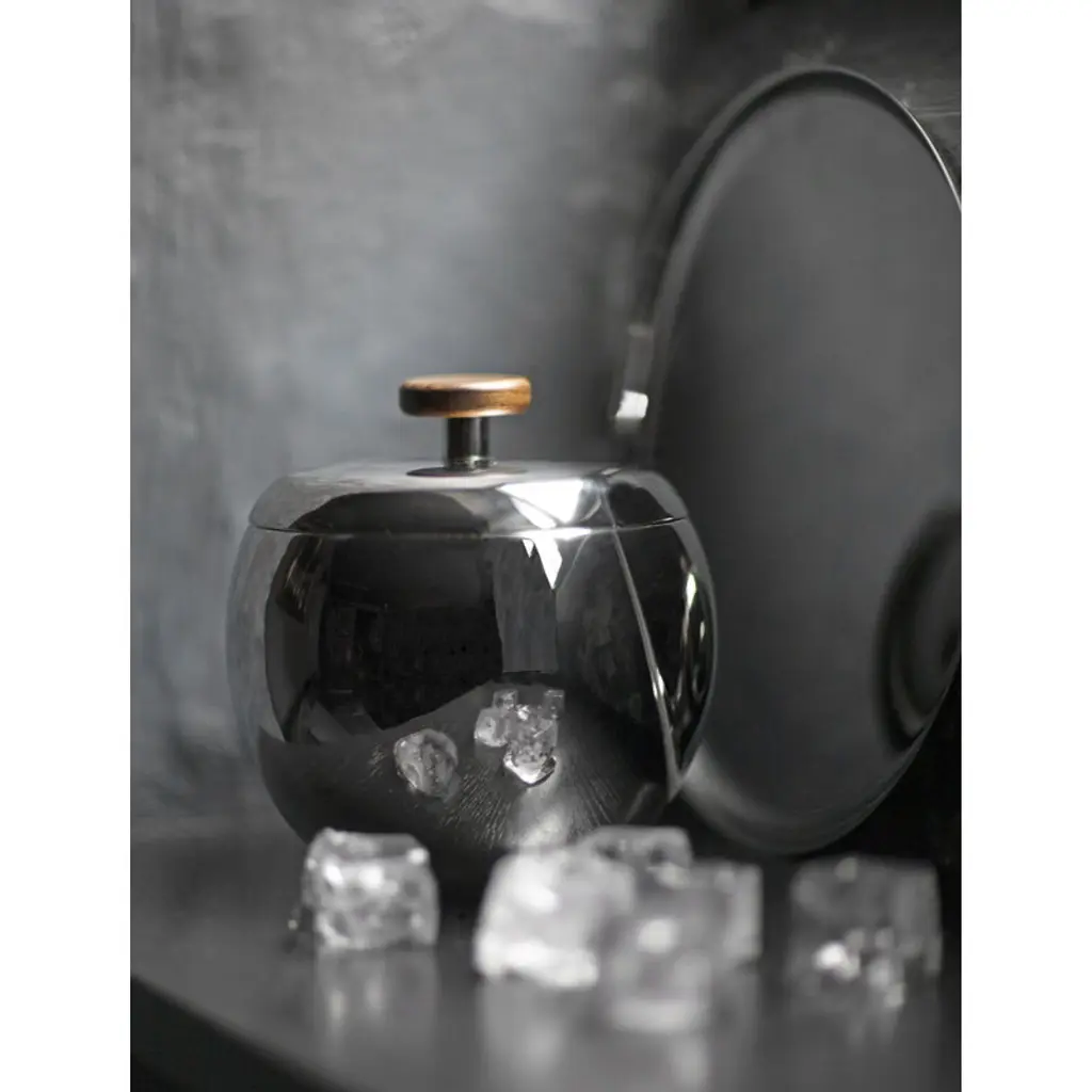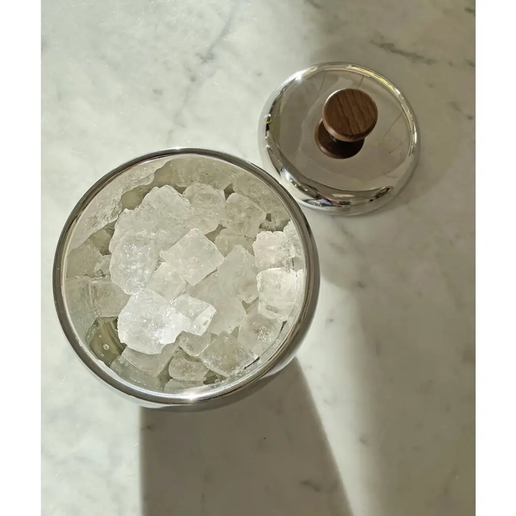 Kay Bojesen’s ice bucket offers a luxurious solution for storing and serving ice cubes, whether at a bar counter or on a festive table. Crafted from polished stainless steel, the softly rounded lines of the ice bucket are enhanced by double walls for efficient insulation, with a wooden handle on the lid giving a final touch of elegance. The ice bucket has a capacity of 1.5 liters. The ice bucket is part of the renowned Danish designer Kay Bojesen’s collection of bar accessories. Bojesen designed an array of bar and cocktail silverware between the 1920s and 1950s, and the original drawings have since been reimagined in stainless steel and glass. The collection’s timeless appearance and sophisticated lines add elegance to any table setting, delighting cocktail enthusiasts and design aficionados alike.