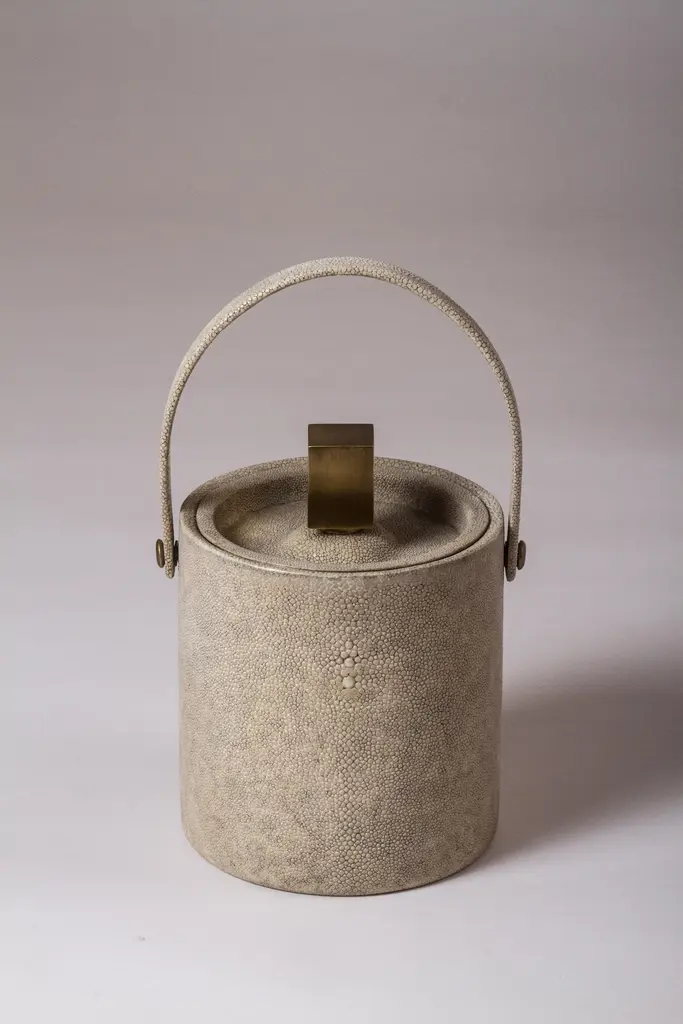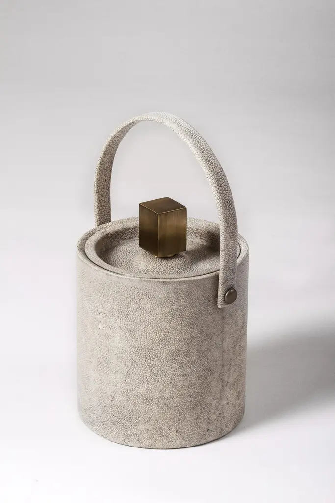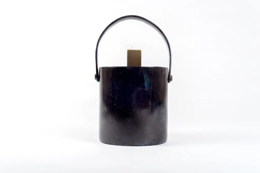 Ice Bucket In Shagreen, Shell And Bronze Patina Brass By Kifu Paris
