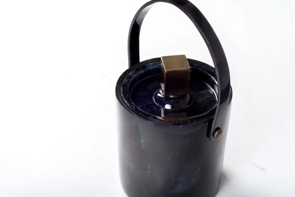 Ice Bucket In Shagreen, Shell And Bronze Patina Brass By Kifu Paris