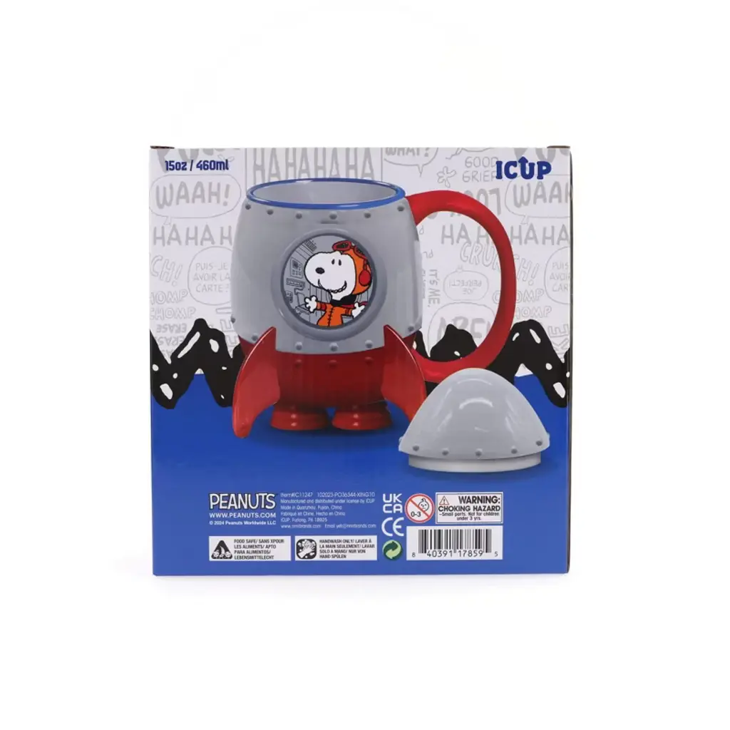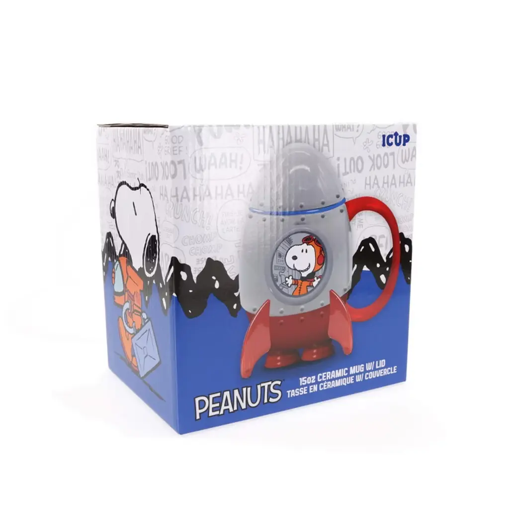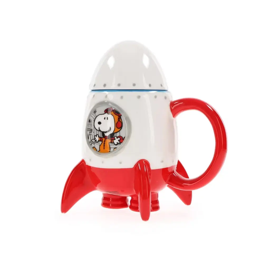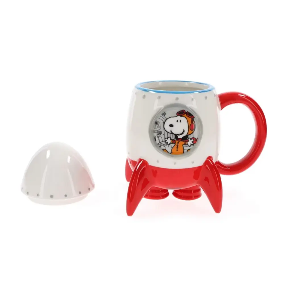This adorable Snoopy ceramic molded mug is the ultimate item or gift for Peanuts and Snoopy fans of all ages. Molded to look like a Rocketship with Snoopy looking out the window, it holds 15 ounces and comes with a detachable lid to help keep your beverage hot or cold. It's perfect for gatherings, birthdays, holidays, kids and adults will absolutely love receiving it as a gift. Officially licensed.