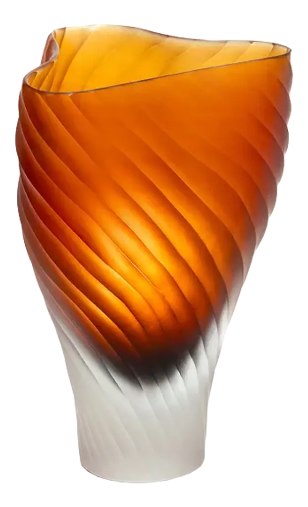 The two water glasses comprising this superb set fashioned of red-hued Murano glass are a spot-on choice to bring a pop of color to any table setting. Their classic shape is enlivened by a pleasant texture of twisted stripes, resulting from patient work of blowing hot glass into a mold. Other textures, colors, and a set of six pieces are also available, please consult the Concierge for details and pricing.