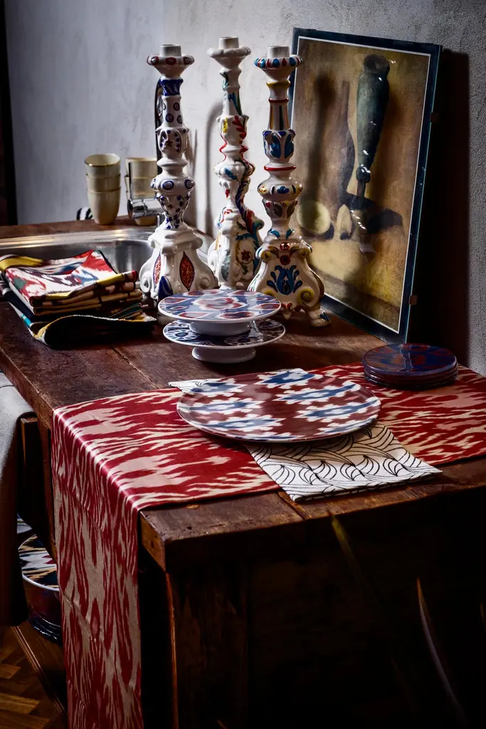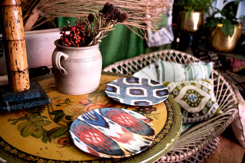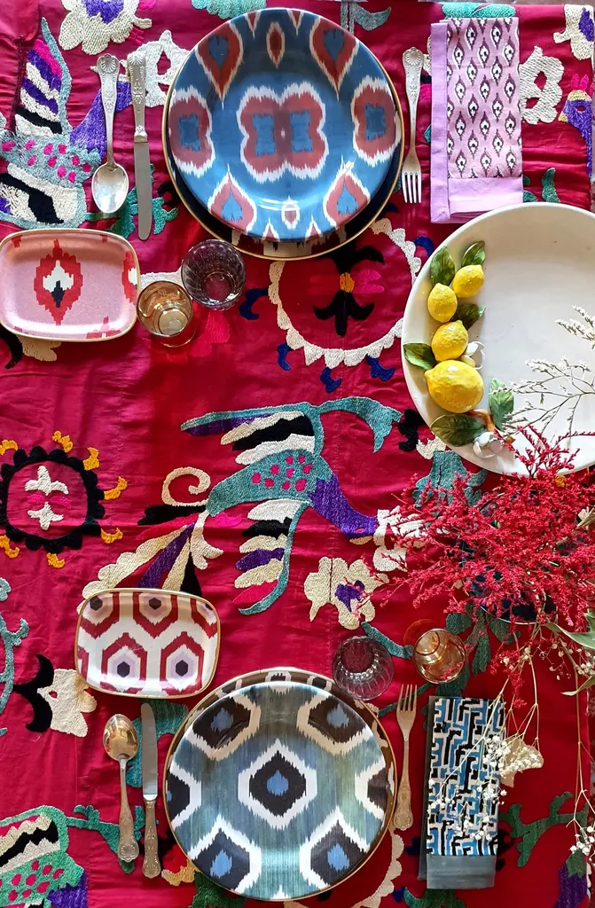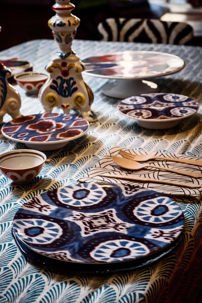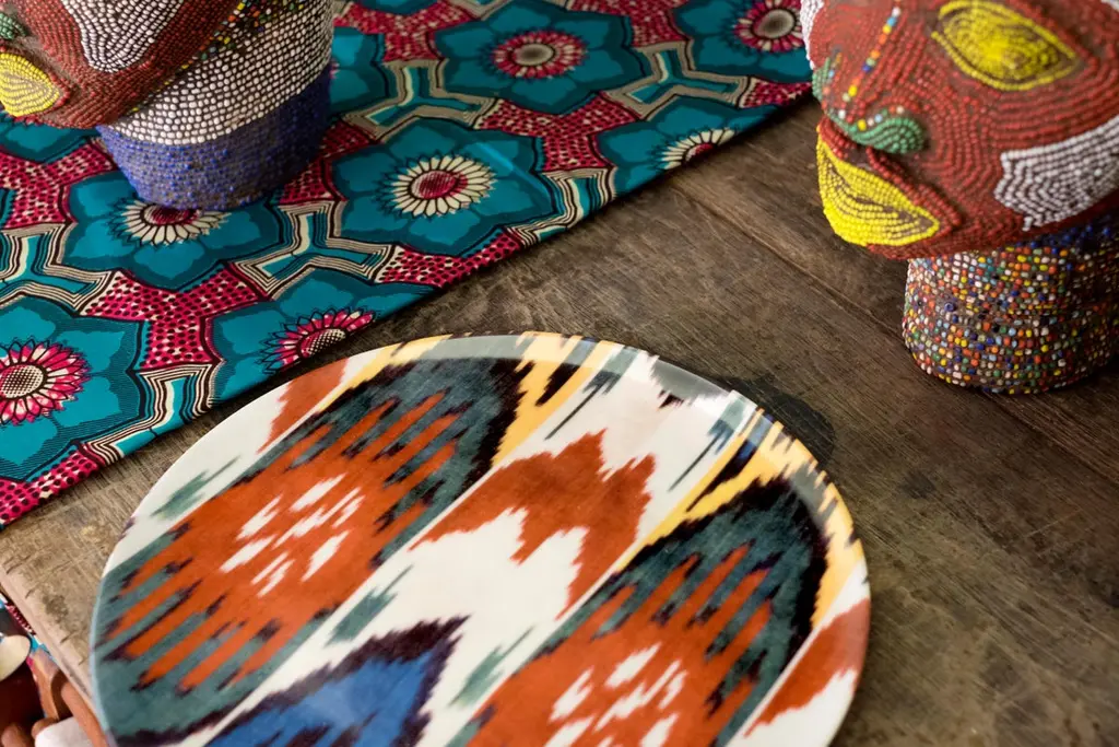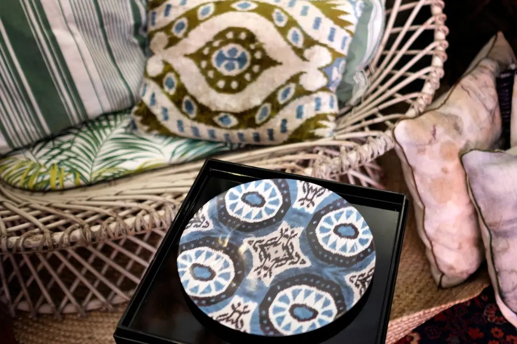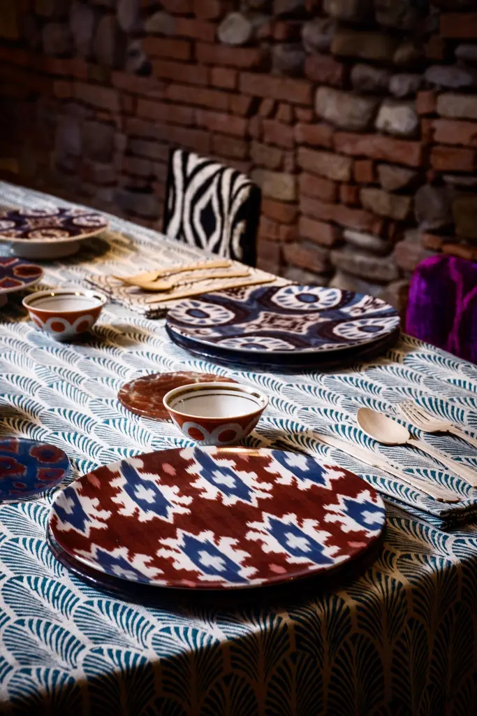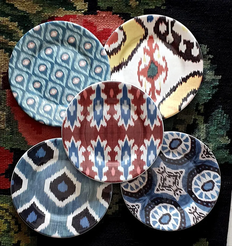 Ikat patterns are an integral part of our colorful world, celebrating the beauty of this timeless design. Inspired by its rich heritage, we’ve transformed some of our most iconic Ikat designs into a vibrant porcelain plate collection. Handmade in Italy, this set of 6 plates is perfect for adding a joyful, playful touch to your tableware collection or as stunning decorative wall pieces. These plates are designed to bring elegance and delight to every dining experience.Made in Italy100% PorcelainHand-applied decalSet of 6 different Ikat Designs