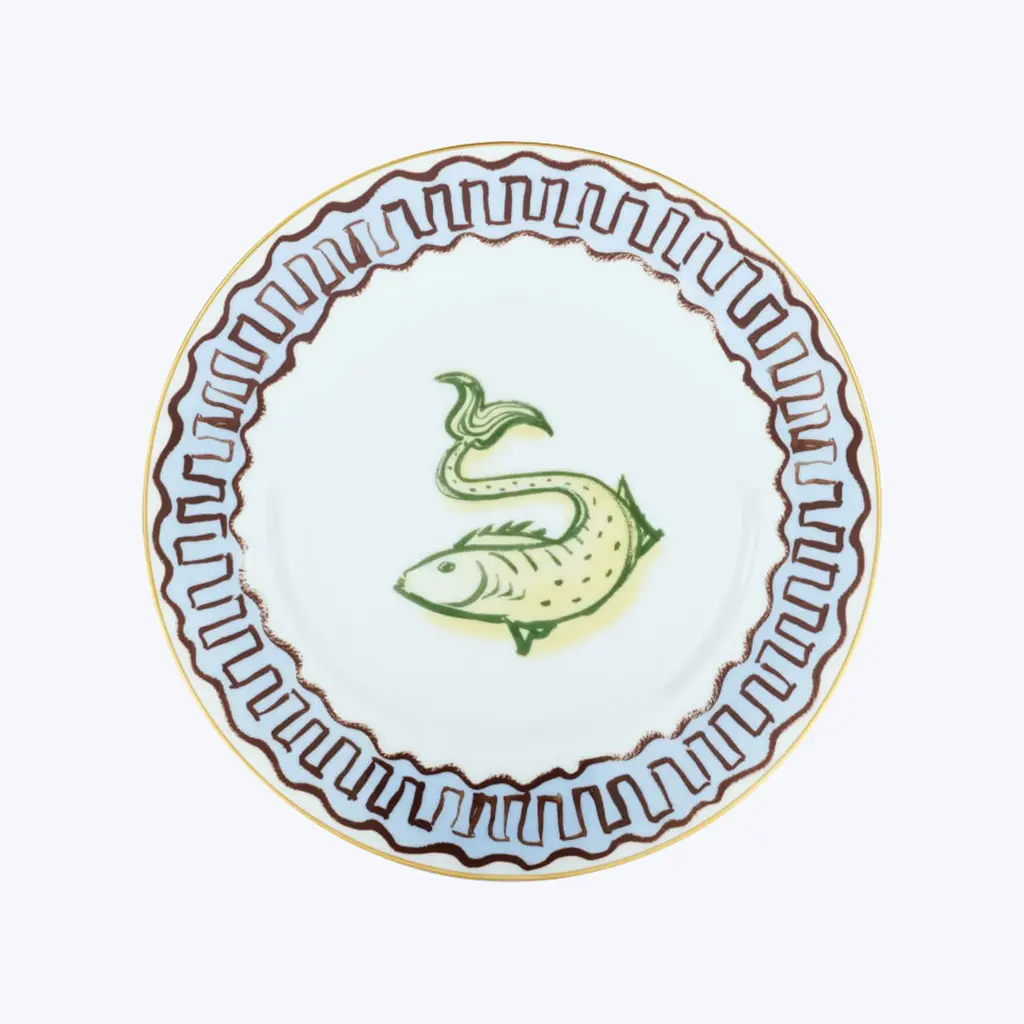 Discover the Il Viaggio di Nettuno Bread Plate by Ginori 1735. Inspired by Greek ceramics and Mediterranean hues, this exquisite bread plate showcases British designer Luke Edward Hall’s creative reimagining of the classical world. Crafted in Italy in fine porcelain and trimmed with pure gold threading. Available in Brown & Light Blue and Light Blue & Yellow combinations.