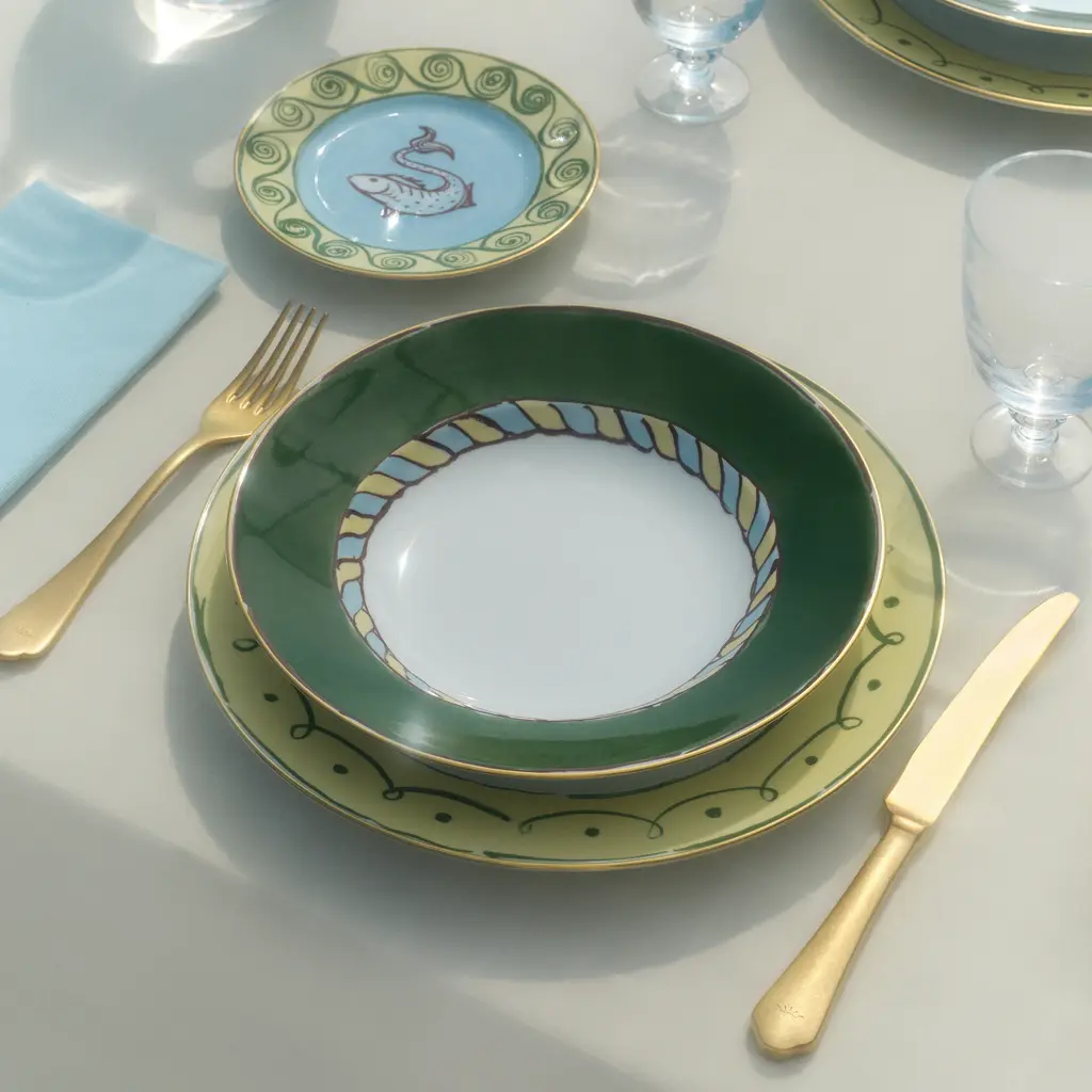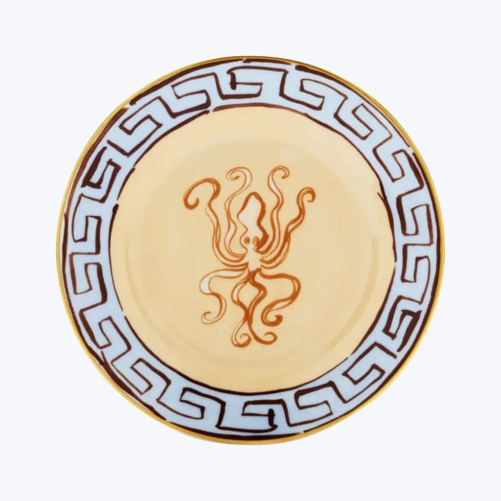 Discover the Il Viaggio di Nettuno Bread Plate by Ginori 1735. Inspired by Greek ceramics and Mediterranean hues, this exquisite bread plate showcases British designer Luke Edward Hall’s creative reimagining of the classical world. Crafted in Italy in fine porcelain and trimmed with pure gold threading. Available in Brown & Light Blue and Light Blue & Yellow combinations.
