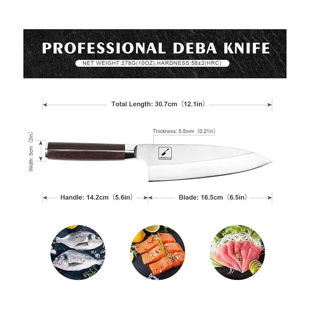 Imarku 7-inch Deba Knife, Ultra Sharp Sushi Knife, Ultimate Japanese Kitchen Knife With Stainless Steel Single Bevel, Fish Fillet Knife