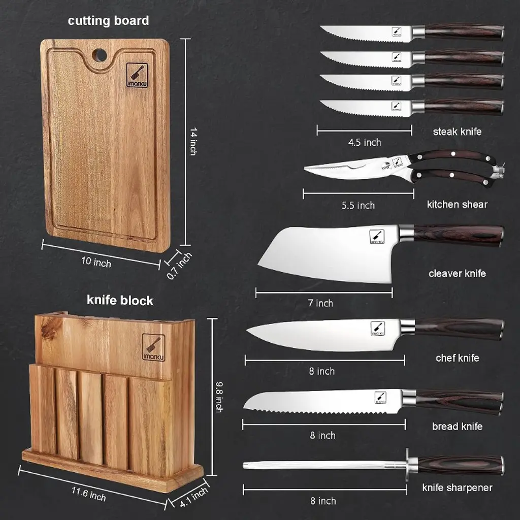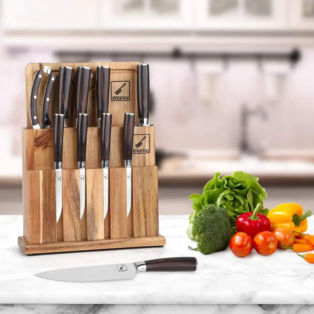 Imarku Knife Set, Imarku 11-piece Professional Kitchen Knife Set With Block, Stainless Steel Chef Knife Set With Wooden Cutting Board, Sharpener