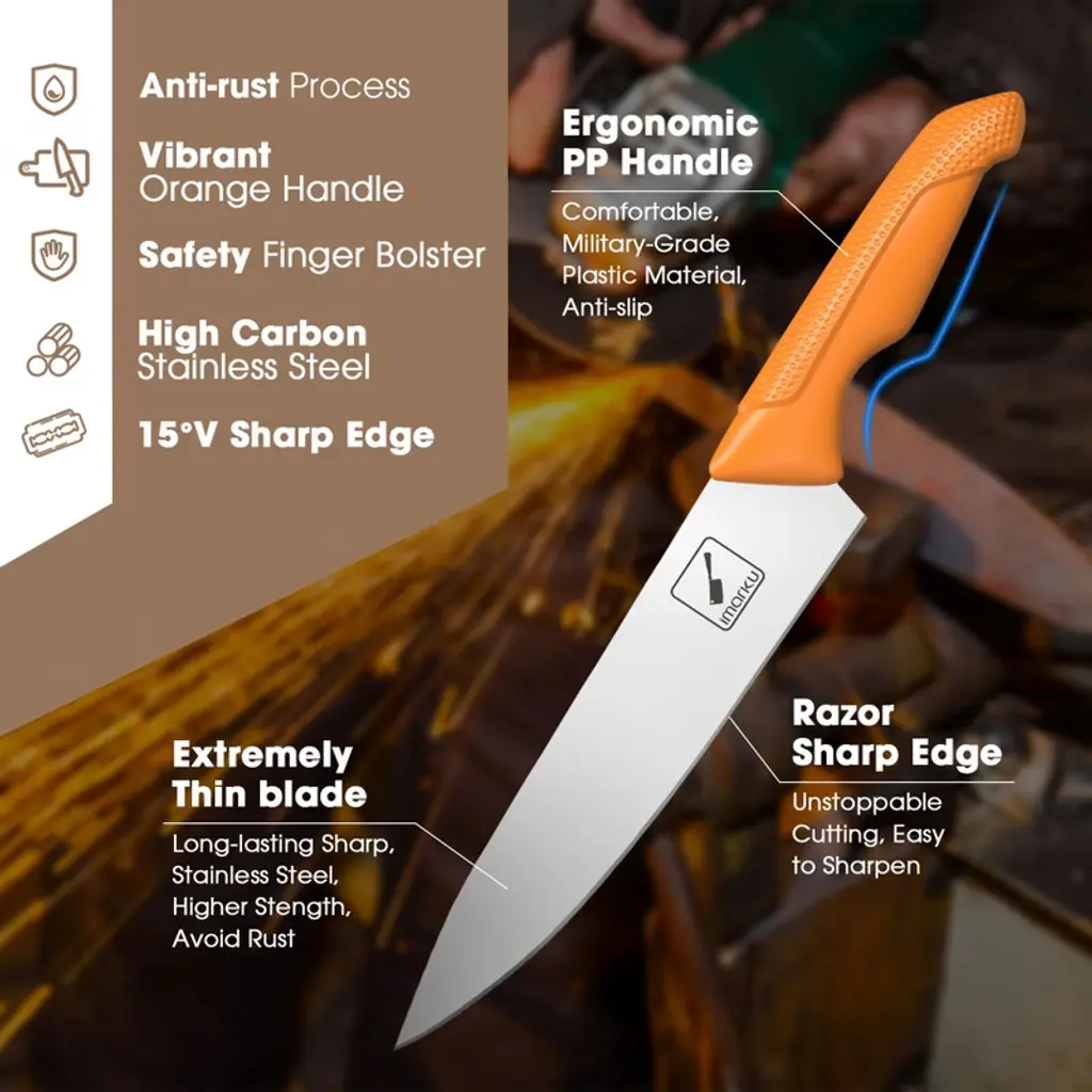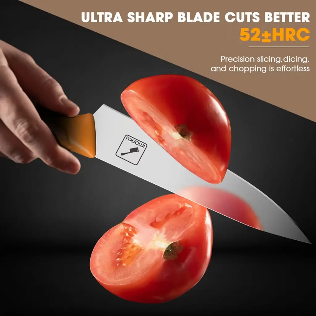 Imarku Knife Set With Built-in Sharpener, Japanese Stainless Steel With Non-slip Ergonomic Handle, Dishwasher Safe, Kitchen Gifts, Orange