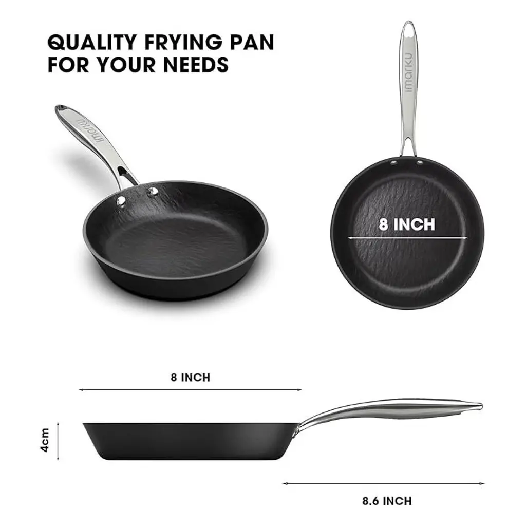 Imarku Professional Cooking Pan - 8 Inch Cast Iron Skillet, Nonstick Frying Eggs Pan With Ergonomic Stainless Steel Handle, Dishwasher Safe