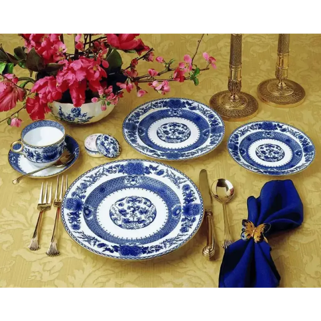 An oval shape adds a softer line to this very decorative platter. A favorite with brides, Mottahedeh specializes in luxurious patterns and unique, elegant shapes that are reproduced from china found in museums and historical societies. The patterns feature complex and vibrant colors, and hand-painted gold decoration. The pieces are surprisingly fresh and timely, and look wonderful in both contemporary and traditional dining rooms.