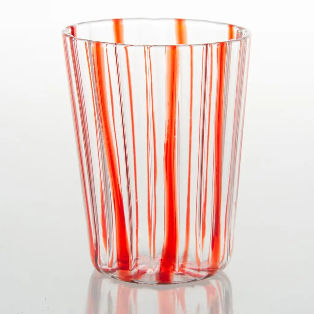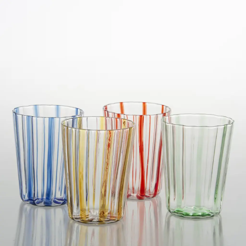 The Tuttoattaccato vertical stripes glass collection is the colorful answer to your pursuit of beauty. Adorne your table setting with these authentic Italian masterpieces. Every glass is handblown in Italy by expert artisans, decorating the internal ribbed glass with colored rods. Enjoy from ice-cold cocktails to hot drinks and play with the transparency of borosilicate glass in a timeless striped design that tastes like Italy.