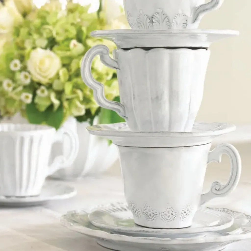 Italian for enchantment, Incanto is inspired by Italian art, the landscape, and Venetian history. The scallop design on the Incanto Stone scallop mug celebrates Venetian architecture, and the elegant, swirling handle brings Italian artistry to your coffee, tea, or hot chocolate. The Incanto Stone scallop coffee mug is handcrafted of durable stoneware and inspired by the waves of the Adriatic Sea, mix and match it with other designs for your own unique setting.