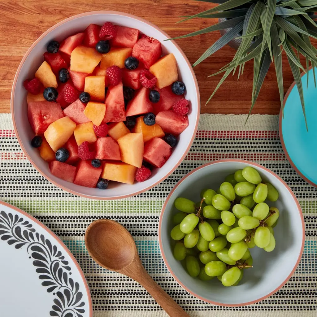 INFUSE brings the intense flavors of Latin cuisine to your kitchen with a cookware collection that celebrates the cultural significance of Latin cooking. Our assortment is designed to honor the rich history of the cuisine and bring out the delightful aromas and delicious flavors that have made the food so popular worldwide. Inspired by traditional, beautifully hand-painted designs and rich colors, our Lebrillo Collection is perfect for serving, sharing, and savoring in style. Ideal for casual snacking, everyday dining, or casual gatherings and special celebrations, our Lebrillo Collection brings timeless charm to every dining experience. Seamlessly transition prepared food from the kitchen to your dinner table or outdoor dining area. Whether you're serving snacks, appetizers, sides, or your favorite home-cooked meal, this durable and lightweight serving collection is perfect for adding a touch of authenticity to your cooking, table setting, and dinner experiences.