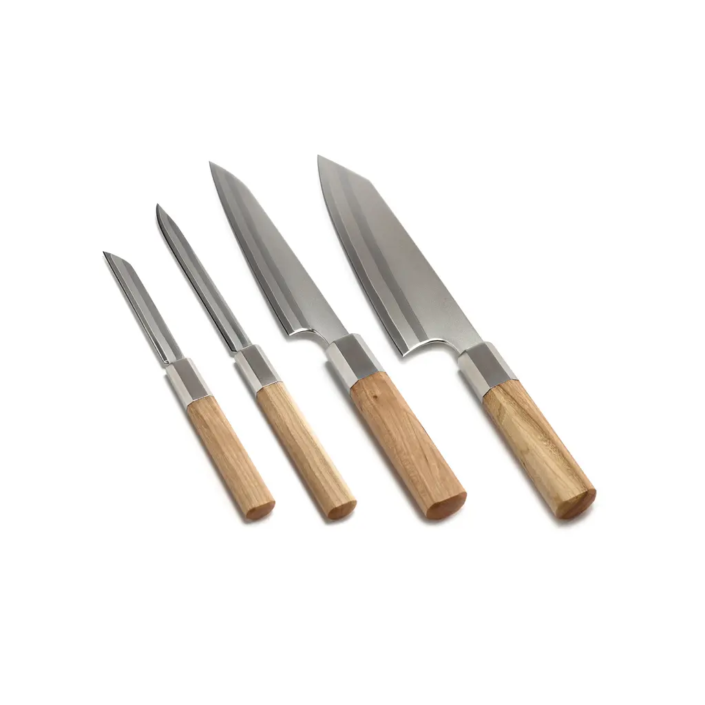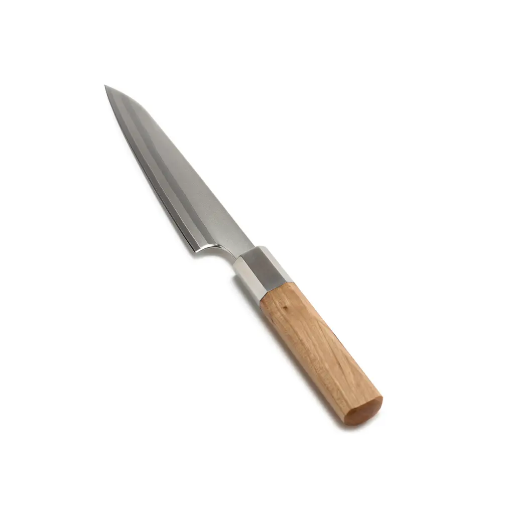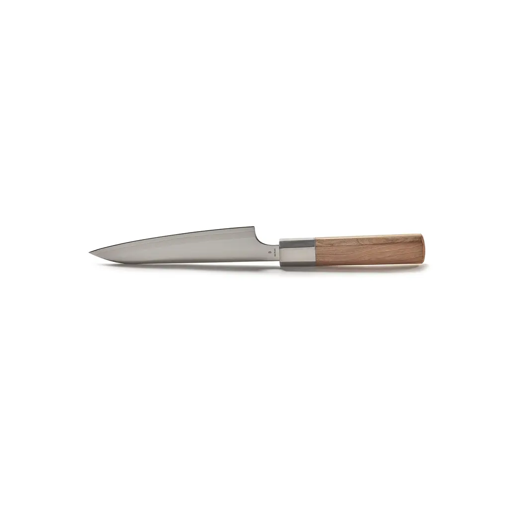 Sitting between a chef’s knife and a paring knife, the Serax Inku Office Knife offers the best of both worlds. It suits almost any task in the kitchen, from cutting and slicing vegetables and fruit to carving meat and dicing herbs. Plus, it’s designed by chef royalty, 3 Michelin-star holder chef, restaurateur and designer Sergio Herman. Taking inspiration from Japanese artistry and the concept of wabi sabi, Herman created this Inku knife with a cherry wood handle and a layered steel blade. Both the handle and the blade boast textured patterns that highlight the distinctive character of each material. A pleasure to use, the Serax Inku Office Knife is a fantastic all-rounder you can depend on, regardless of what you’re cooking. A chef’s knife, paring knife and steak knife from the same collection are also available.