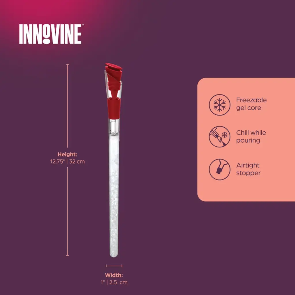 Innnovine Wine Cooling Wand W/ Airtight Stopper And Drip-free Spout, Chills, Pours, Preserves Wines, Fits Standard 750 Ml Bottles, Set Of 1, Raspberry