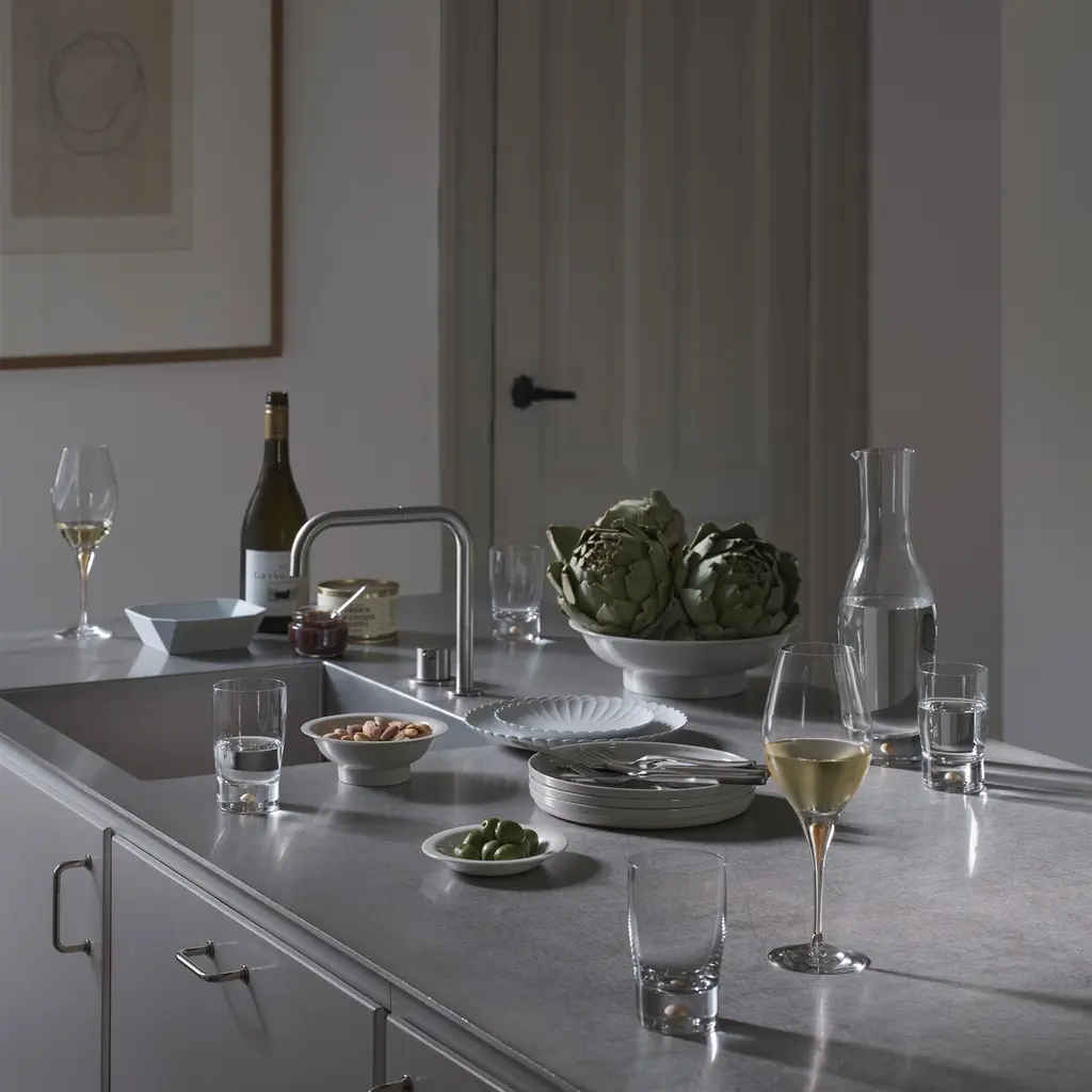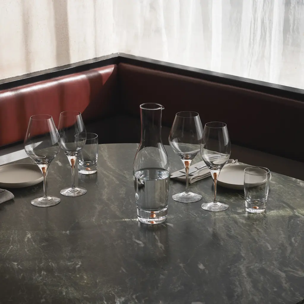 In honor of Erika's 40 years as a designer at Orrefors, and in addition to Orrefors celebrating 125 years as a brand, Intermezzo is produced in a celebratory golden edition, delivering a festive elegance to the brand's most iconic tableware collection.