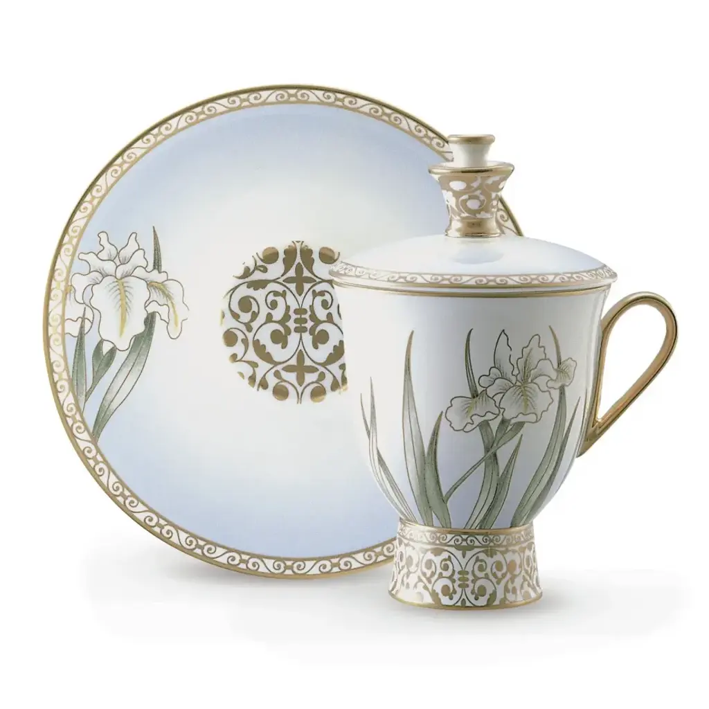 Iris Coffee Cup With Cover & Saucer 6.2 In (Special Order)