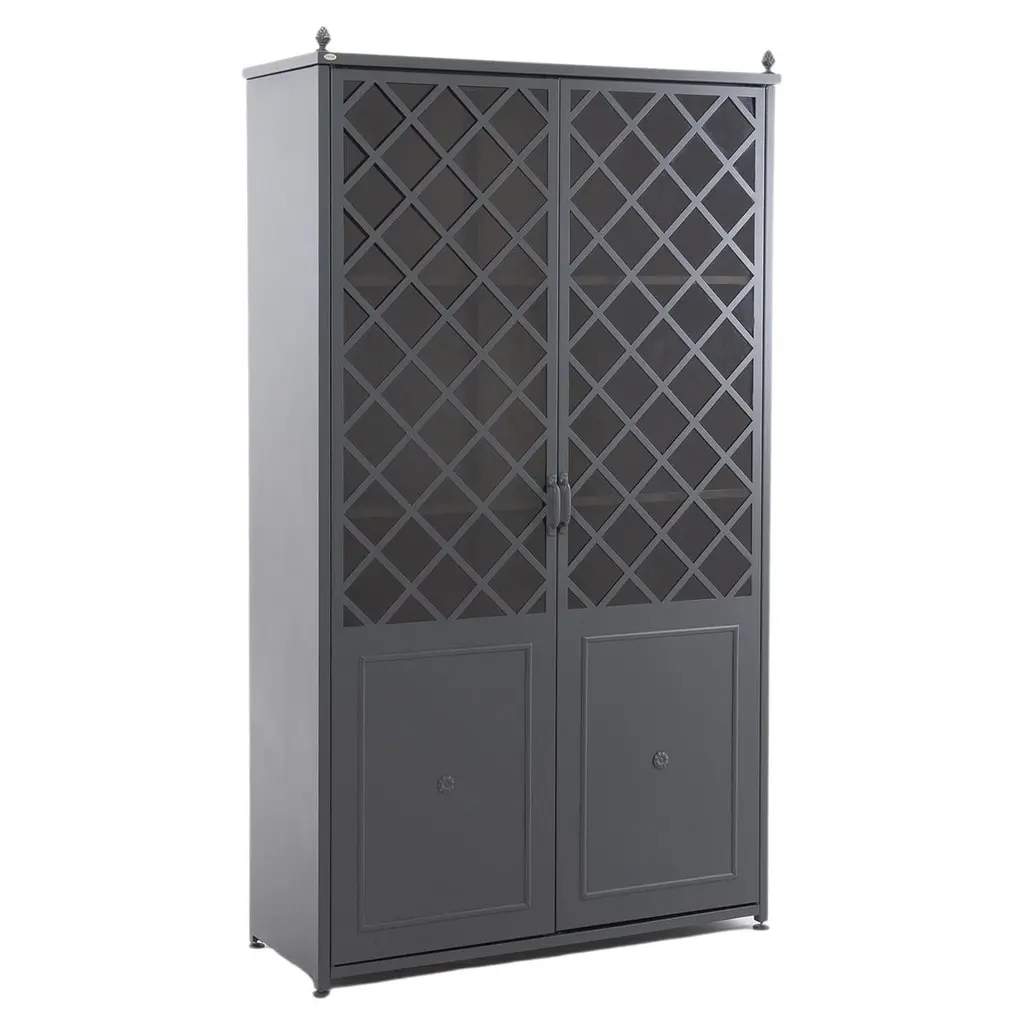 The Iron 2-Door Cupboard from Unopiu's AURORA collection embodies the luxury and sophistication of Umbro-Tuscan traditions. Crafted with galvanized iron and fume polycarbonate panels, this cupboard features three shelves and magnet closure doors. Elevate your space with its graceful, romantic lines.