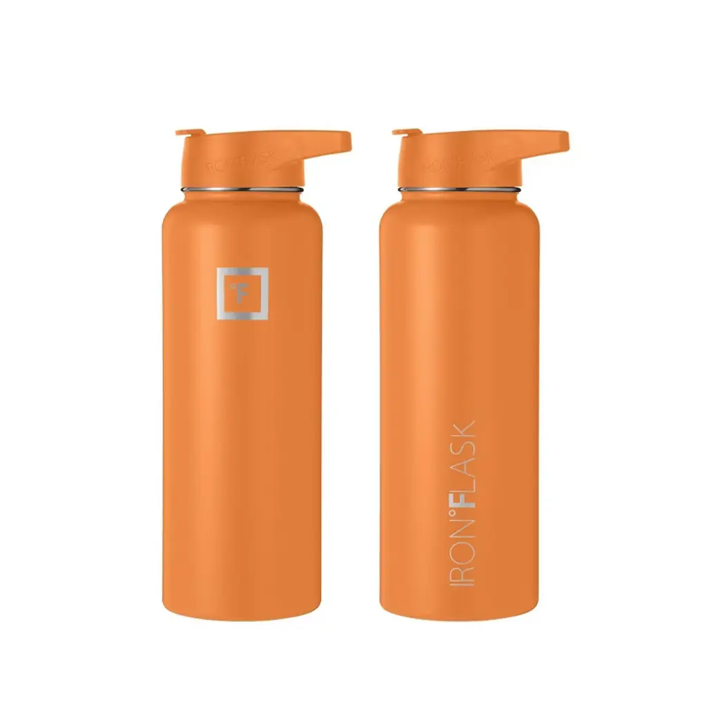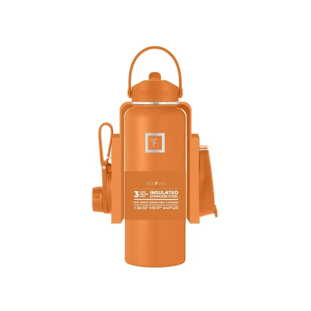 Iron Flask 40oz Stainless Steel Water Bottle With Plastic Lid Apricot Orange: Insulated, Reusable, All Ages