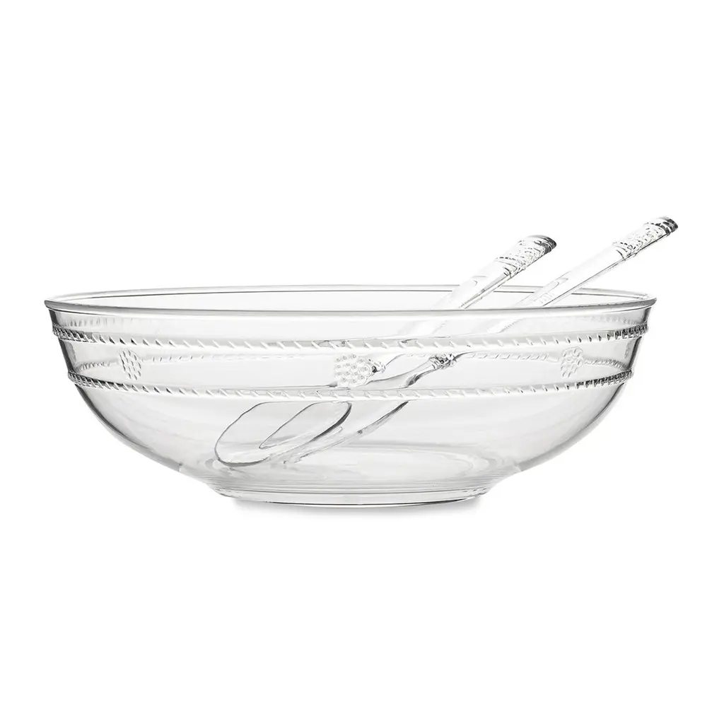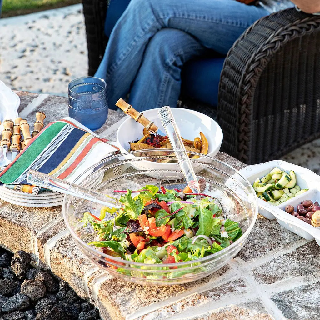 With its textural detailing, this clear serving bowl appears to be handcrafted of glass. Yet it's actually made of shatter-resistant acrylic, so it's ideal for dining alfresco or with little ones.