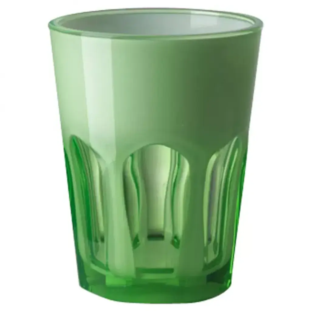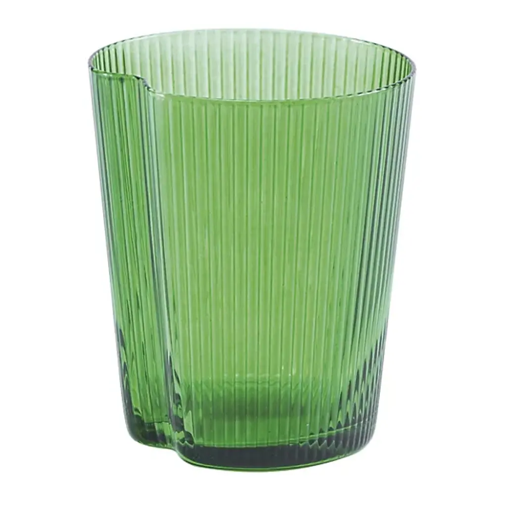 Marked by original simplicity, this set of two water glasses is fashioned of first-rate glass in a classic V-shape. The vibrant green hue combines with the refined, multi-faceted texture enlivening their external surface. Classic yet contemporary, this set will harmonize with any tableware set.
