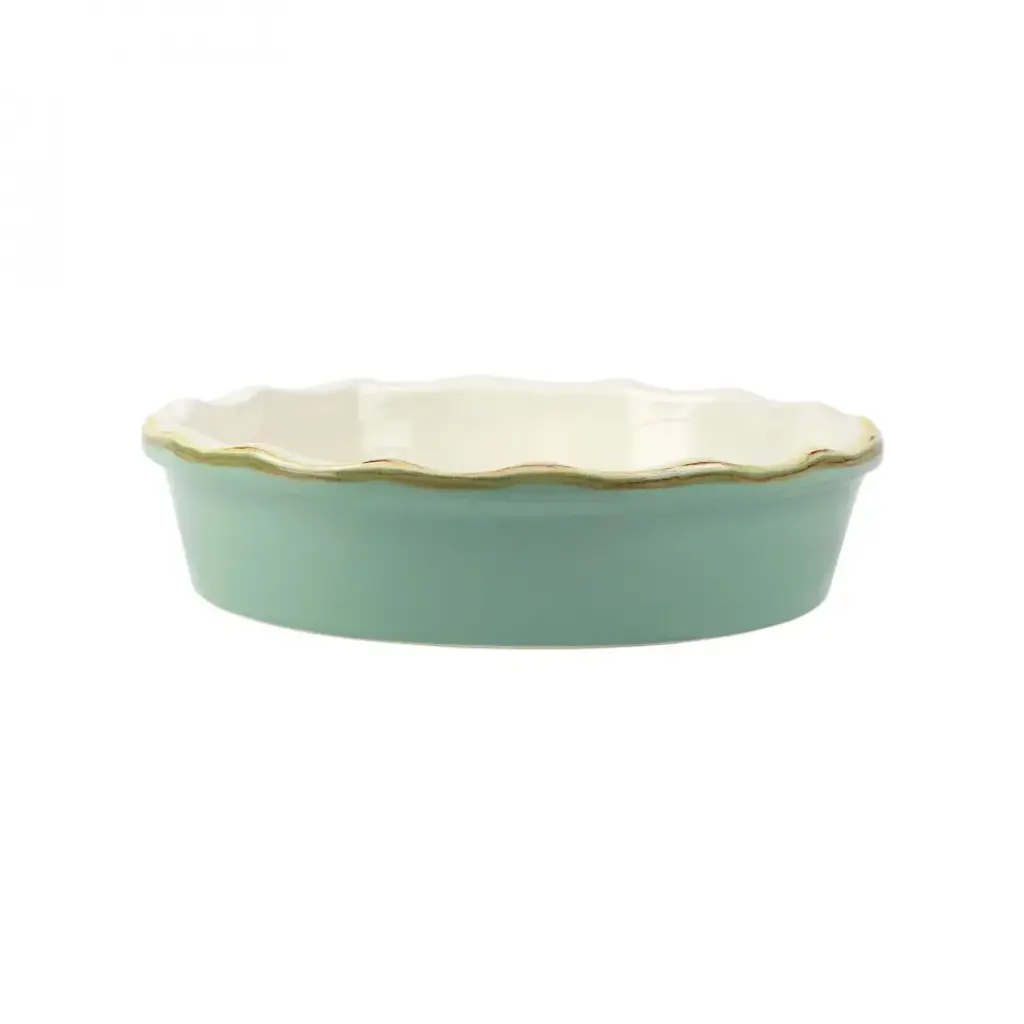 Featuring scalloped edges and a bright, beautiful hue, the Italian Bakers Pie Dish is part of VIETRI's newest line of bakeware. Handcrafted of Italian stoneware in Umbria, this charming shape makes it a special piece for all gatherings. Since 1983, Vietri has specialized exclusively in Italian handcrafted ceramics, stainless and pewter flatware, mouth blown glassware, lamps, urns and planters. Families of artisans with 3 or 4 generations of history create these special pieces using centuries-old techniques. The subtle color from a paintbrush and the curving stroke of the artist's hand are never repeated in quite the same way, making each piece truly unique.