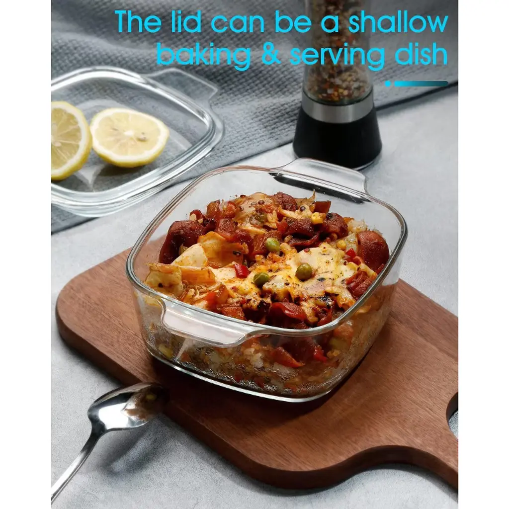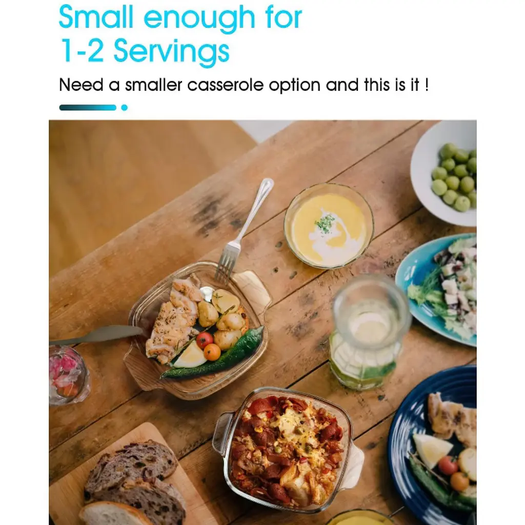 Itopfox 1 Quart Glass Square Casserole Dish With Lid, Mini Baking Dish For Single Serving, Microwave & Oven Safe, Deep Design For Spill Prevention