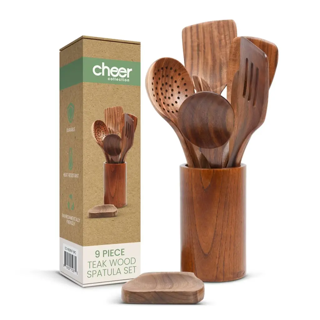 Itopfox 10-piece Wooden Kitchen Utensil Set - Teak Wood Spoons, Spatulas, Ladle For Non-stick Cookware, Cooking Tools With Hanging Holes