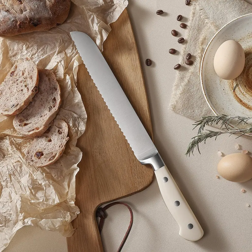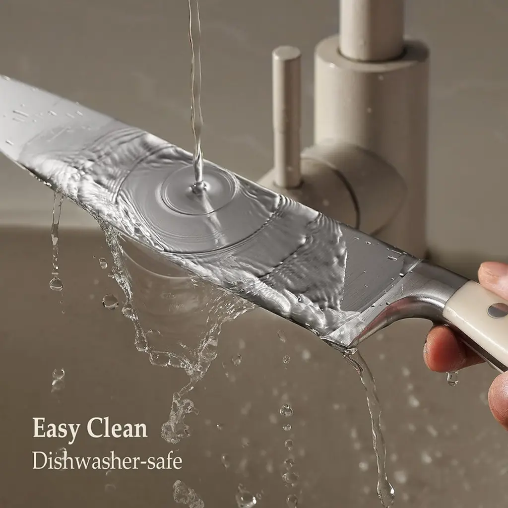 Itopfox 14-piece Forged High Carbon Stainless Steel Knife Set With Block, Sharp Blade Cutlery, Dishwasher Safe, Cream