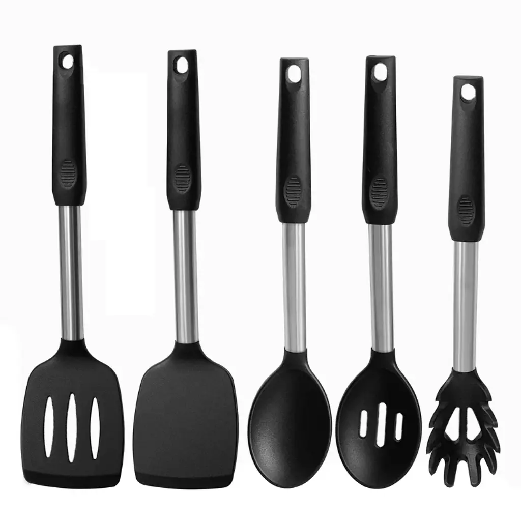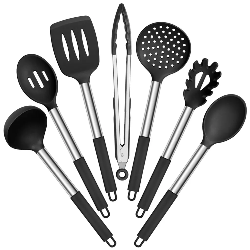Itopfox 14-piece Silicone Cooking Utensil Set With Holder, Spatula, Ladle, Spoon, Tong For Nonstick Cookware, Heat Resistant & Stainless Steel Handle