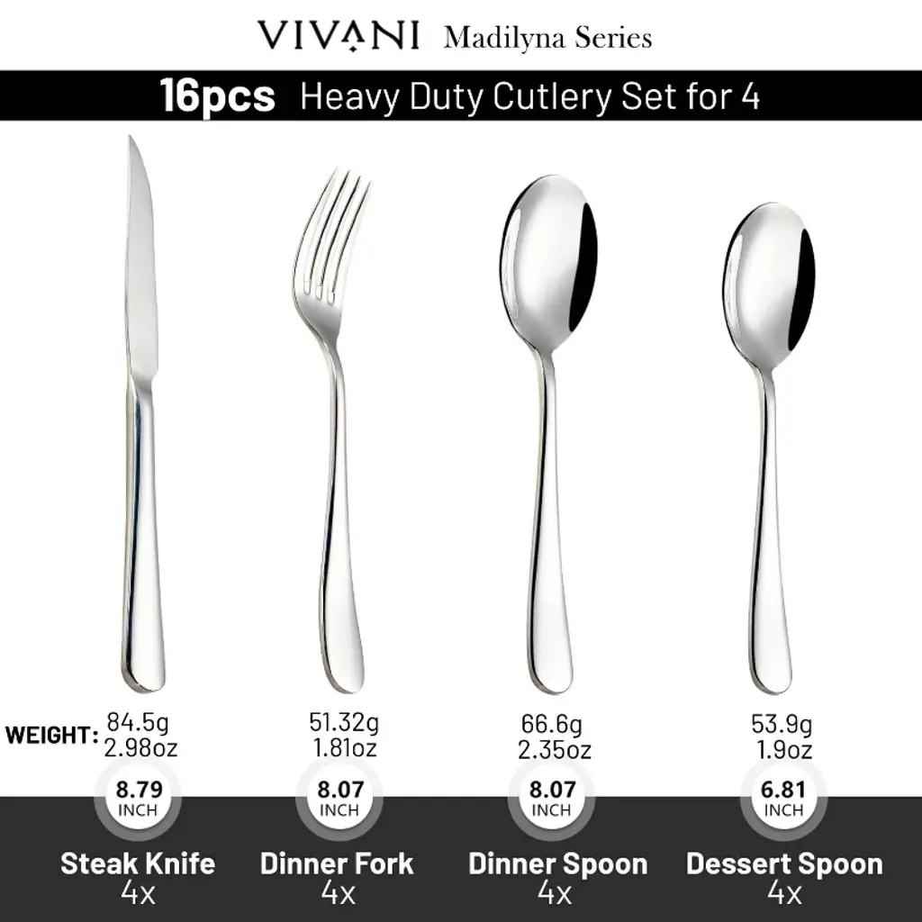Itopfox 16-piece Heavy Duty Silverware Set With Steak Knives, Stainless Steel Cutlery For 4, Dishwasher Safe Flatware For Home, Dorms, Restaurants