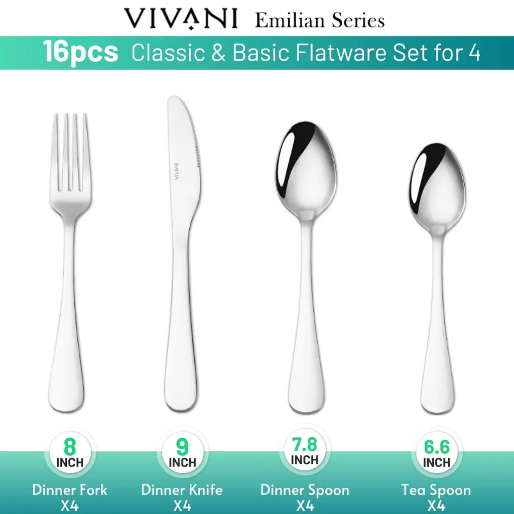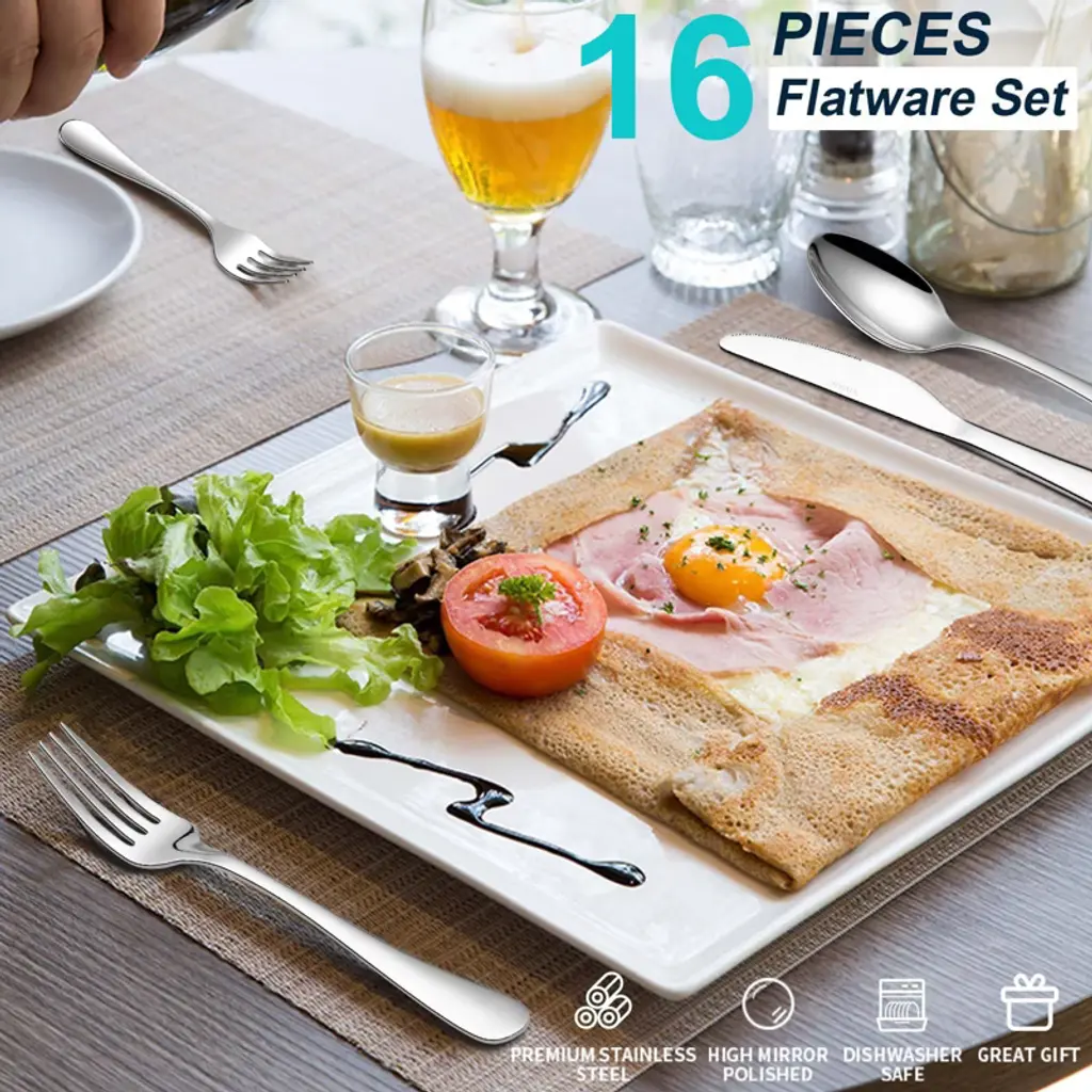 Upgrade your dining experience with this 16 - piece silverware set. Made of high - quality polished stainless steel, it's not only durable but also corrosion - resistant. The classic design, featuring a highly mirror - polished finish and smooth edges, adds an elegant touch to your table. With an ergonomic handle, it fits comfortably in your hand for a great grip. This set includes 4 dinner forks, 4 dinner spoons, 4 tea spoons, and 4 dinner knives, all neatly packaged in a gift box, making it ideal for housewarming, Thanksgiving, and Christmas. It's dishwasher - safe, which means you can easily clean it and free your hands from greasy work. When hand - washing, just dry them before storing and avoid using hard - material cleaning tools. Enjoy the convenience and style this silverware set brings to your home kitchen.