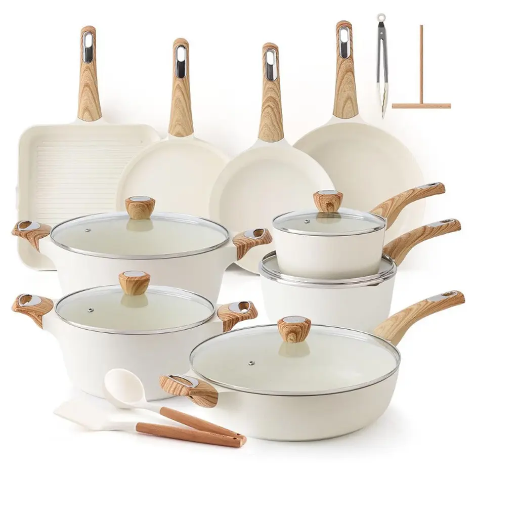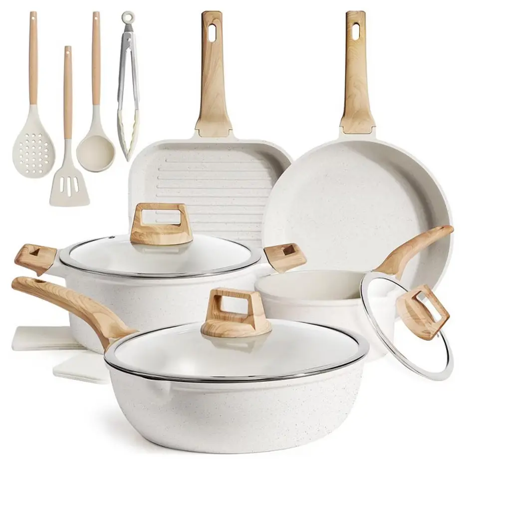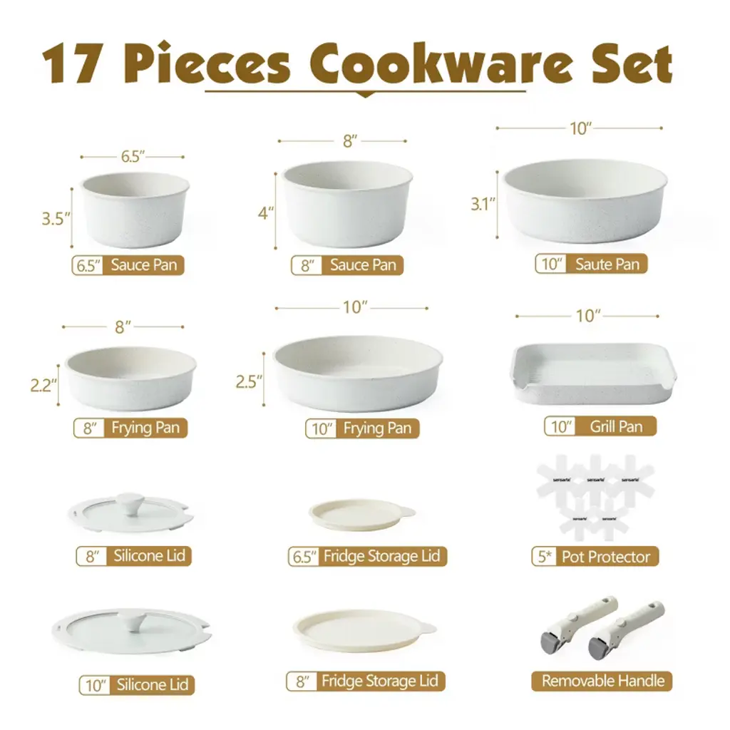 Itopfox 17-piece Nonstick Cookware Set With Removable Handles, Induction Compatible, Dishwasher Safe Healthy Granite Coating For All Stovetops