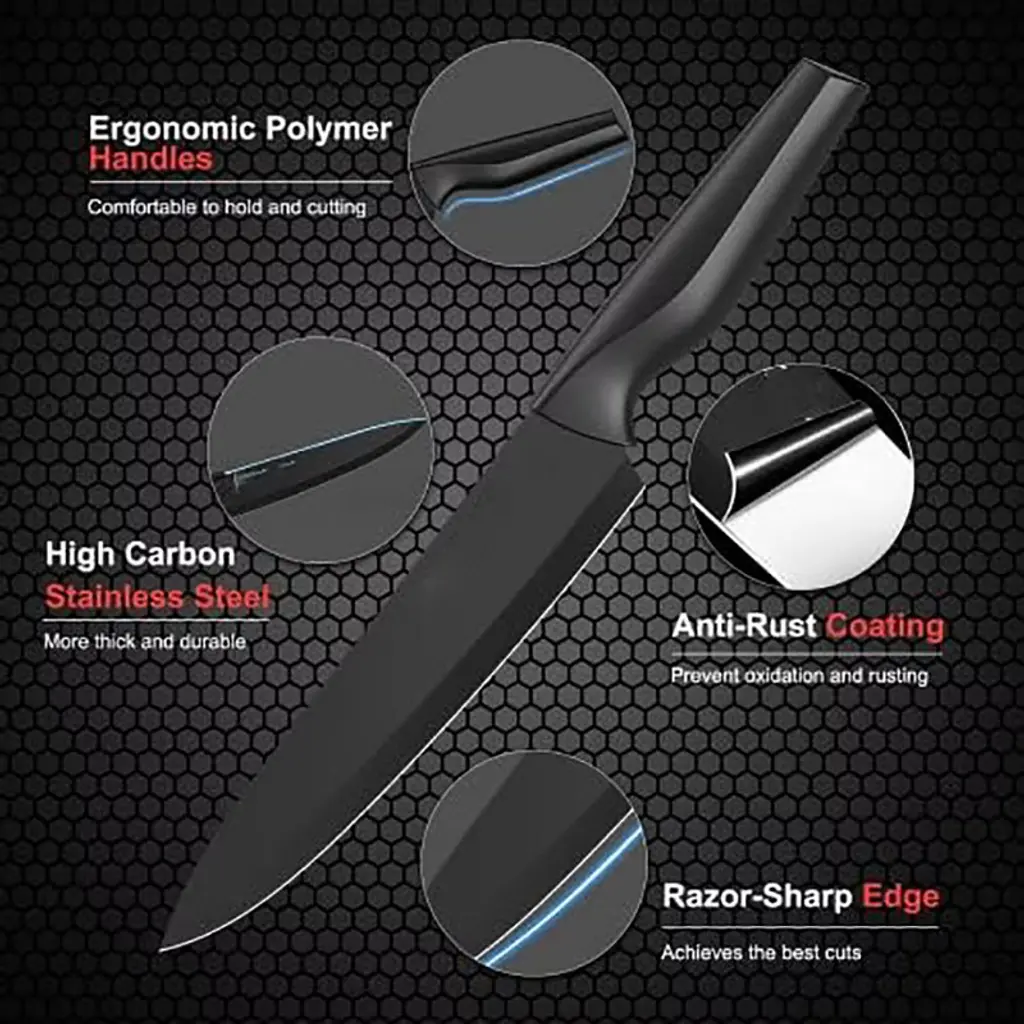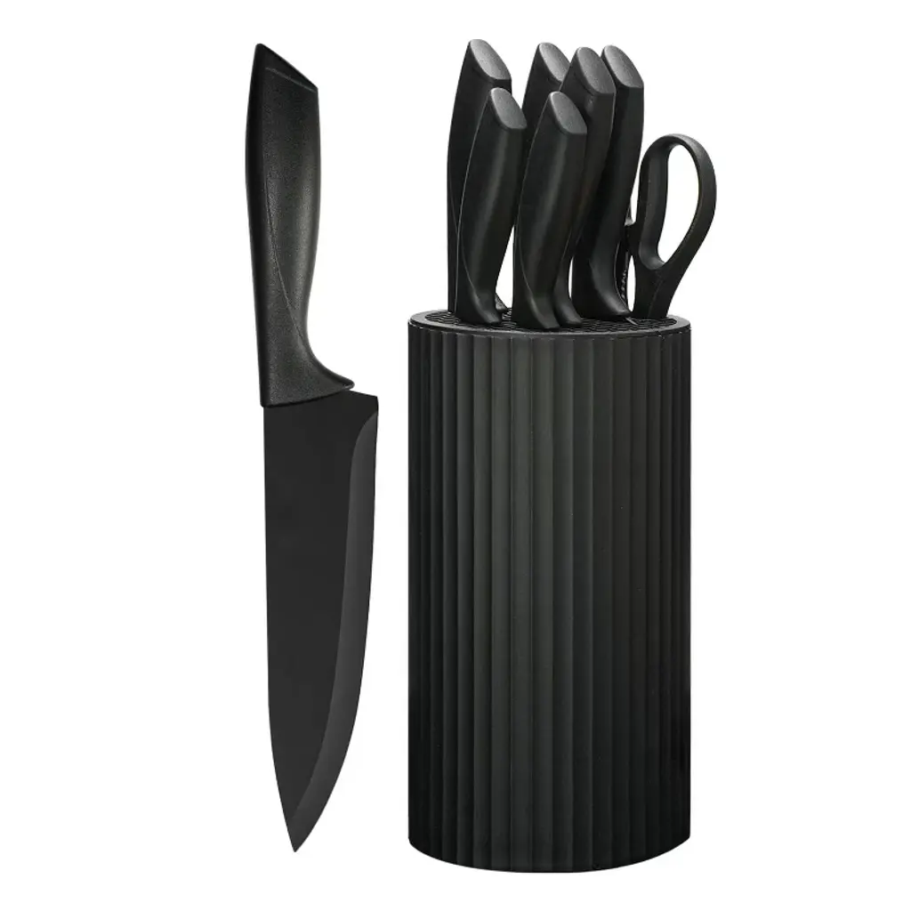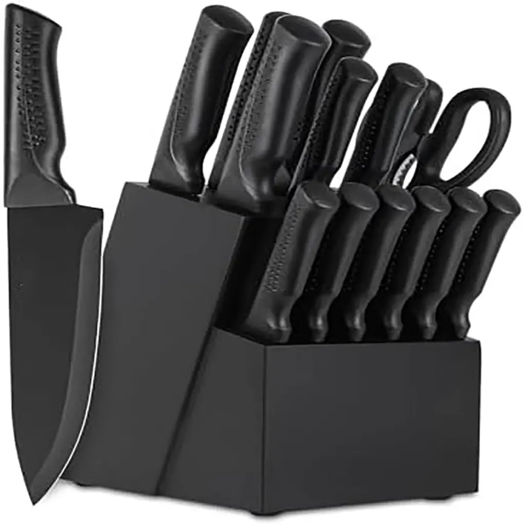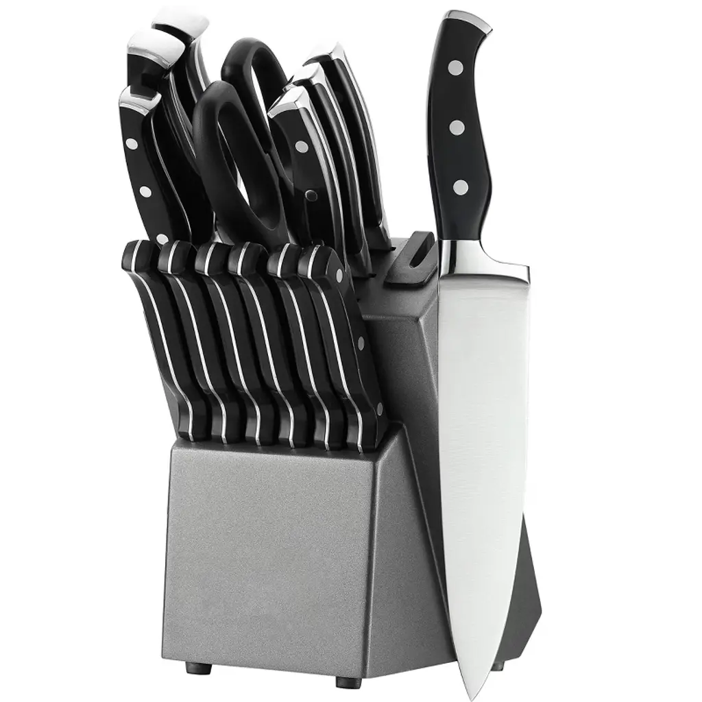 Upgrade your kitchen with this 21 - piece knife set. Crafted from 1.4116 high - carbon German stainless steel, these knives are highly resistant to stains and rust. The set includes a wide range of knives for different kitchen tasks, from chopping vegetables to slicing meat. The black non - stick and anti - rust coating on the blades ensures long - term performance. The built - in sharpener in the hard wood knife block allows you to easily keep your knives sharp with just one hand. It's dishwasher safe, thanks to the industry - leading tapered edge grinding technology that provides optimal sharpness. Whether you're a professional chef or a home cook, this knife set is a must - have, making your cooking experience more efficient and enjoyable.